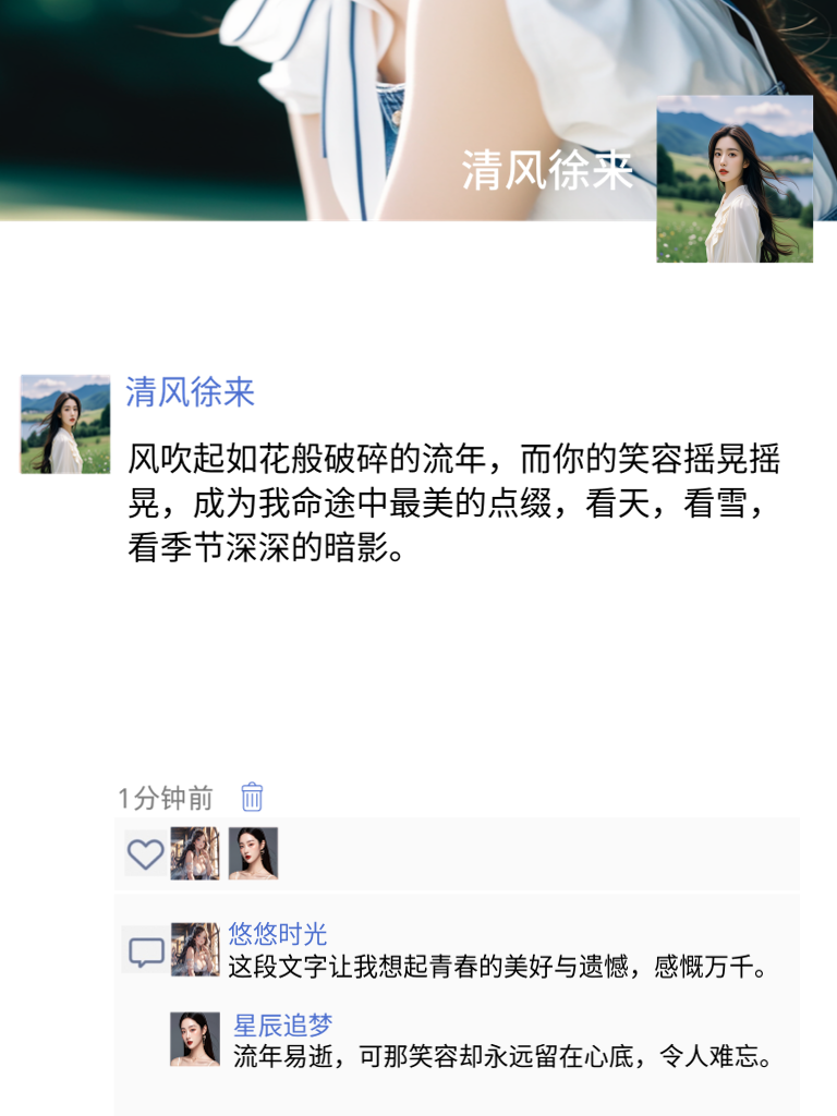 感情不需比较,比来比去只会显出各自的不足;感情也不适合过多剖析,轻易揭穿只会让其支离破碎。人生就像一场战斗,我们需要与各种困难抗争,包括外在的环境挑战和内心的消极情绪。在这漫长的人生旅途中,有风有雨也有彩虹,就像当年的那一阵清风,吹散了时间的尘埃,留下了如花般的回忆,还有你的笑容,那一刻,成为了我生命中最美妙的点缀。