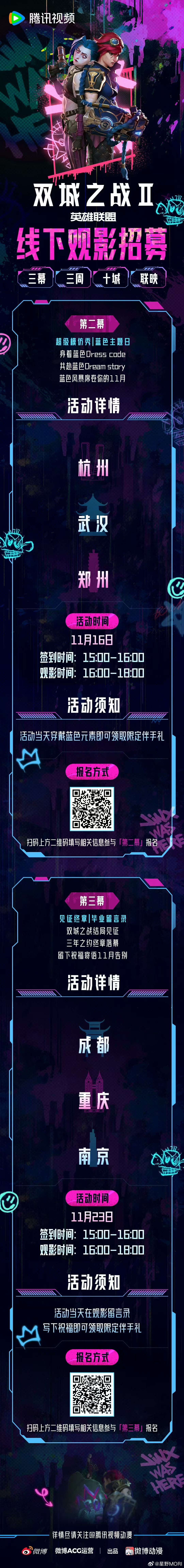 大英雄金克丝驾到 这就是鹅的排面吗!每周都有线上线下的同步观影,今天 双城之战 第二幕上线,杭州、武汉、郑州的小伙伴们可以在大屏幕爽看了,羡慕中!最终章落幕成都、重庆、南京,快来看看有没有你的城市?