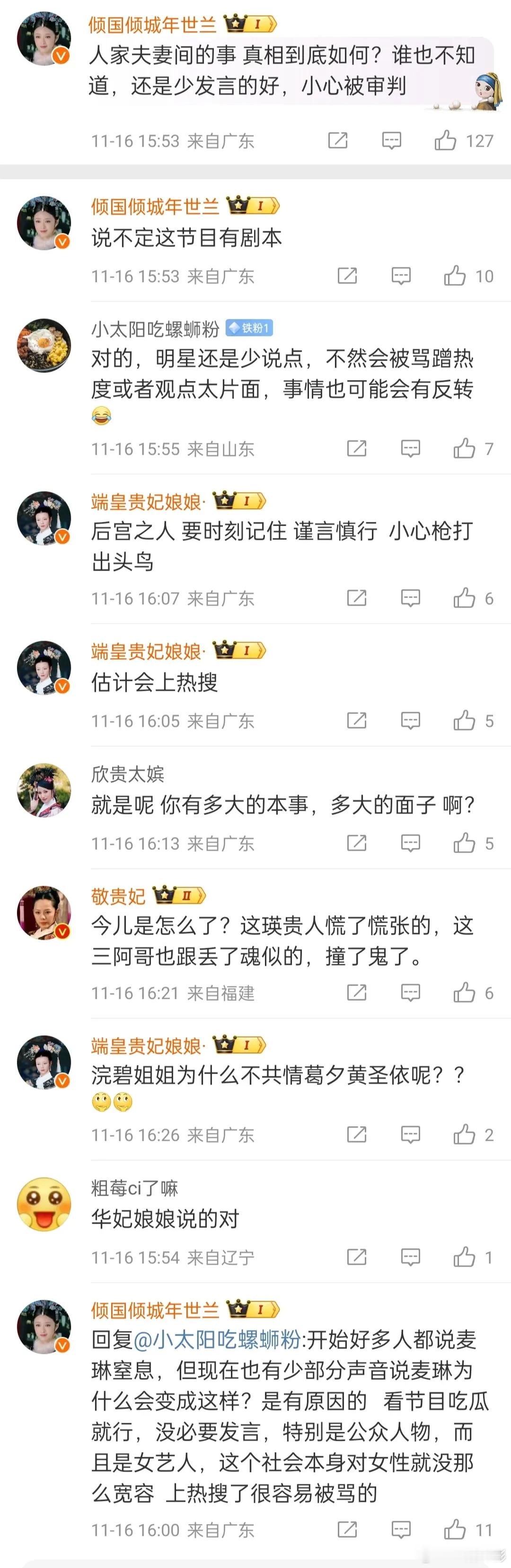 还以为都是支持她的,没想到都是劝她少掺和的,看来还是有很多人理解麦琳的!