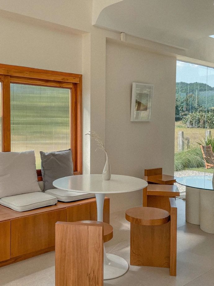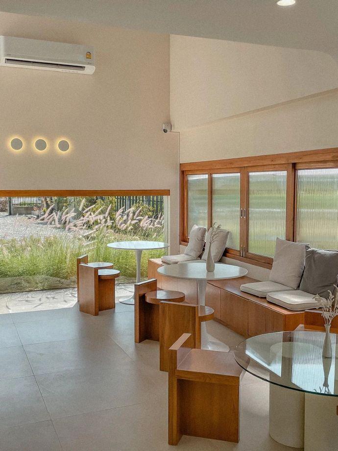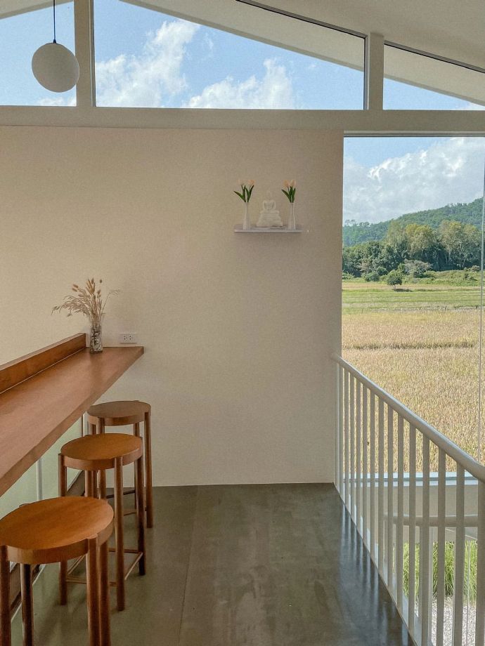 推荐大家可以装这种木质窗框,质感立马有了。没有人会不喜欢这家奶油色咖啡小屋吧,极简风格的小白屋藏于稻田间,整个咖啡店的色调都是奶油色的。特别干净清爽。