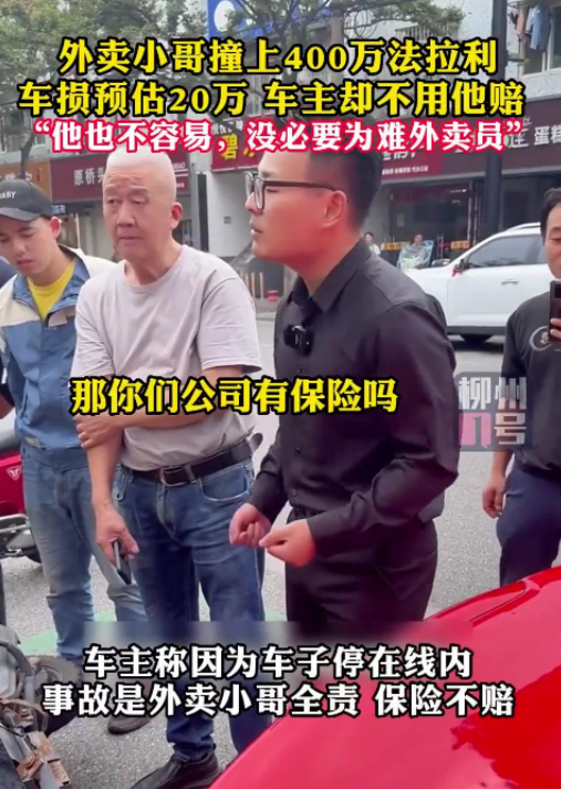 “活该他发财!”2023年,浙江一外卖员在送餐时,为避免撞到孕妇,不慎撞向一旁价值400万的法拉利,车主预估修车费需要20万,他见外卖员站在原地手足无措,顿时明白外卖员也赔不起,谁料,车主接下来的行为实在太暖心!