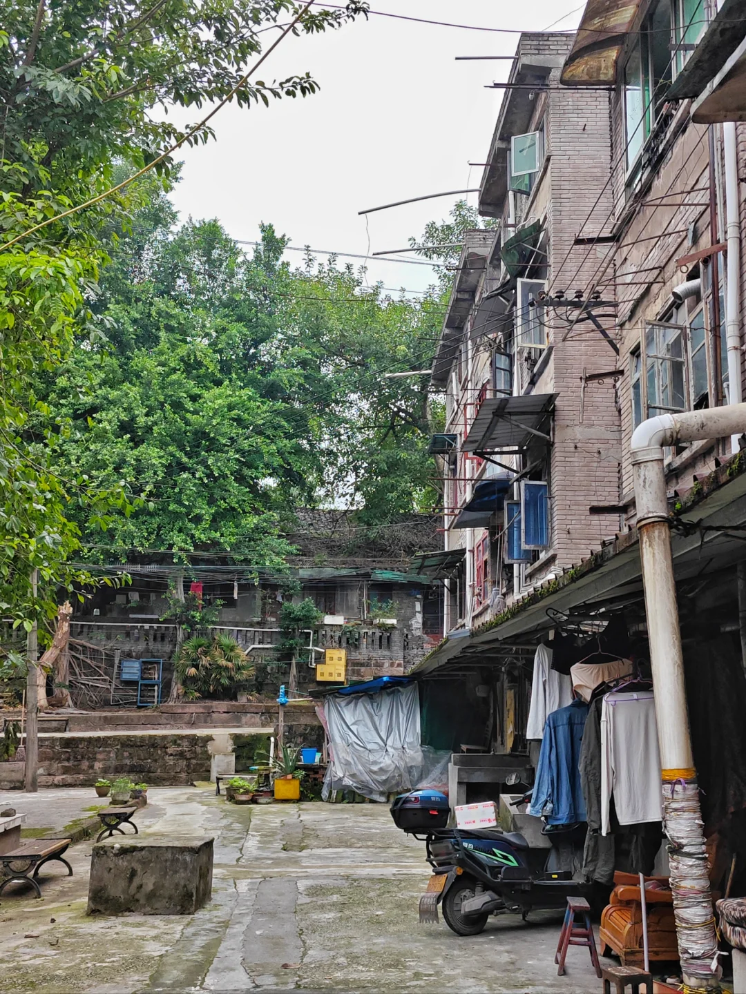 除了这些最老的家属楼,更多的是1960到1980年代的家属楼。里面住的也大部分是老年退休职工和家属。他们在这些破旧的楼房里面住了大半辈子,整个青春都奉献给了长化厂,到退休了还在这里,这就是大时代里普通人波澜起伏的一生。我碰到一个老奶奶,八十多岁了,一聊天,居然还是江北老乡。她说她19岁就跟着父亲从重庆江北廖家河沟到了长化厂,然后一直工作到退休。虽然过年放假也会回到江北,但大部分时间都生活在了长寿,到现在退休了也没有搬走,继续住在了这里。