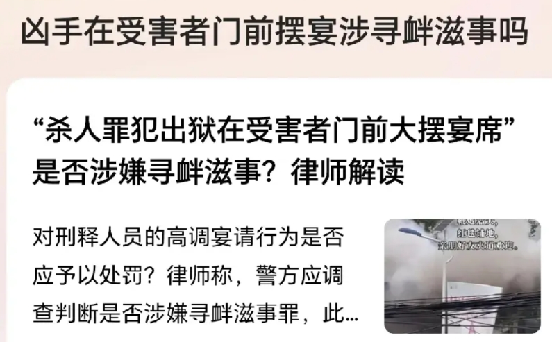 四川绵阳,一男子买凶杀人,被判无期,入狱20年后刑满释放,他在受害者家门口摆下18桌酒席,请了180人,铺上一张红地毯,所有人夹道欢迎,鞭炮齐鸣,热闹非凡,受害人家属不堪其辱,摆出被害人照片,上香拜祭,视频传开,网友:这哪是重新做人,这是凯旋归来!