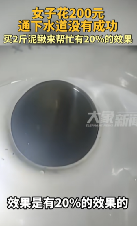 信息来源:大象新闻,2024年11月21日(采访)浙江衢州,女子花200元通下水道没有成功,买2斤泥鳅来帮忙有20%的效果