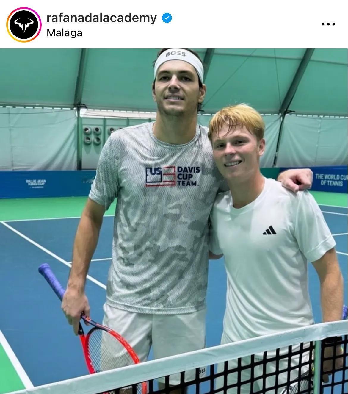 纳达尔网球学院的学员成为参加戴维斯杯的美国队的培训。很好的一次学习锻炼的机会。说不定有一天这个小选手也会代表自己的国家参加戴维斯杯。VAMOS‼️