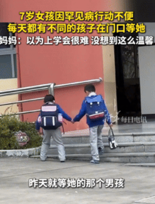 一个7岁的小女孩,因为脑瘫而腿脚不便,她的妈妈心中充满了担忧。害怕孩子会受到同学们的歧视,甚至担心女儿在学校会遇到重重困难。然而,当她带女儿走进学校的那一刻,眼前的场景让她感动得无以自已。