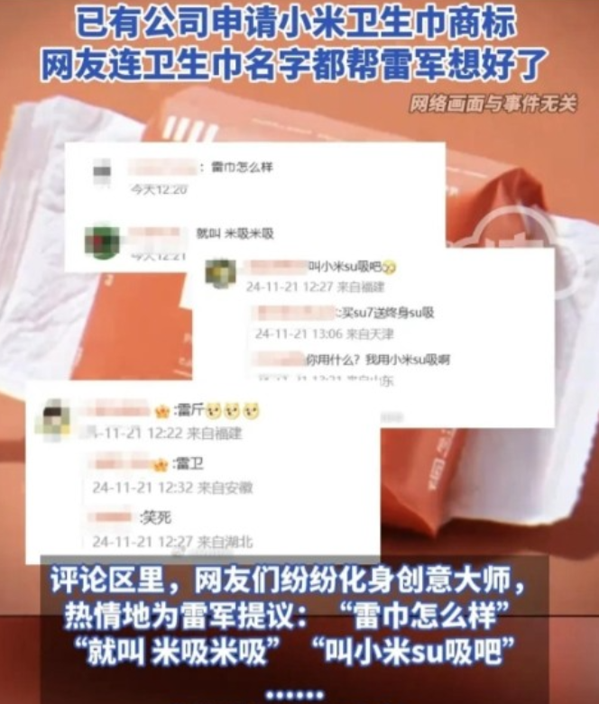 冲上热搜!在卫生巾塌房事件后,网友纷纷喊话雷军,让小米进入卫生巾市场,对此,小米高管回应了…… 近期,多家知名卫生巾品牌接连曝出质量问题,引发了消费者的强烈关注,从产品长度不够到发现异物,甚至还有虫子等问题,卫生巾的质量安全问题让网友们对长期使用的品牌产生了不信任感。 面对“塌房潮”,许多人开始思考未来如何选择可靠的品牌,11月21日,网友们纷纷把目光转向小米,直接在社交媒体上喊话雷军,希望小米能够涉足卫生巾领域。 对于这一热烈的呼声,小米高管迅速做出回应,明确表示“小米短期内不会进入卫生巾市场”。 不过,这样的回应并没有浇灭网友们的热情,反而激发了更多讨论,不少网友调侃:“短期不做,那长期可以考虑嘛!” 甚至有网友自发为小米未来可能的卫生巾产品取名,各种奇思妙想让人忍俊不禁。 讨论之余,网友们也表达了对卫生巾市场的更高期待,他们呼吁企业回归初心,注重产品质量,真正关爱消费者的需求。 卫生巾作为女性日常生活的必需品,应该以更高的标准生产,以确保安全和舒适,尽管目前小米并没有进入卫生巾行业的计划,但网友的热烈呼声折射出了消费者对安全、高质量产品的渴望。 或许,未来真的会有品牌以网友的这些建议为灵感,推出更贴近消费者需求的产品,毕竟,真正抓住消费者的,不仅是品牌的创新,更是对品质的承诺。 (主要信源:大皖新闻)