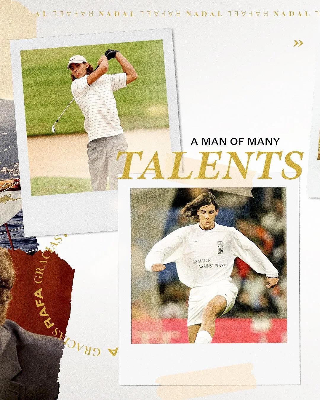 一些纳达尔的标志性时刻,法网冠军时刻,中网穿龙袍时刻,水下打网球时刻……不过纳达尔的标志性时刻怎么能漏了2009年他和夏奇拉一起拍的MTV呢,腼腆的纳达尔在MTV中和夏奇拉激情四射,到现在看都是张力十足。 话说年轻时的纳达尔颜值超高的,脸庞线条分明,充满朝气和活力,长发飘飘,高大挺拔。怀念头发茂密的Rafa。