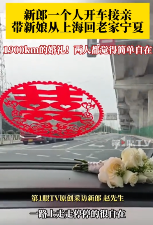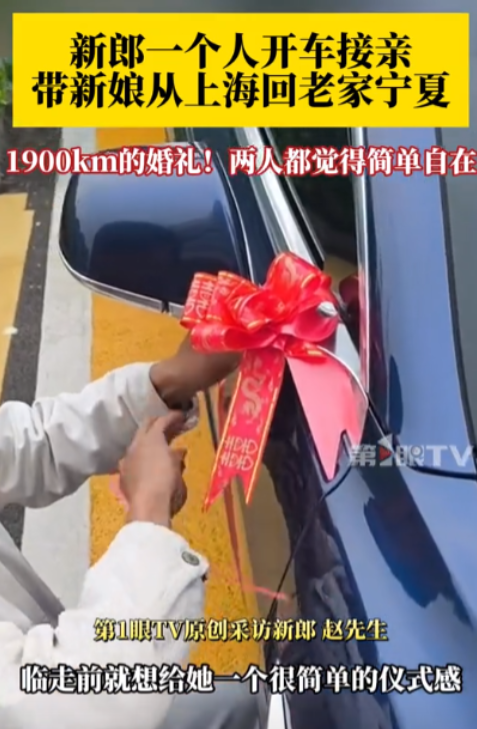 一个人的接亲仪式!新郎一个人开车接亲,带着新娘从上海回老家宁夏,一场长达1900公里的婚礼旅途就这样开始了。网友:“千言万语化作我的真心祝福。”