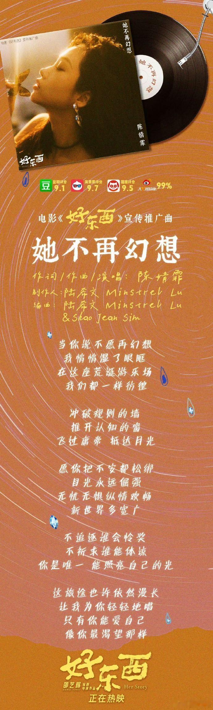 陈婧霏 她有魅力又自知 不得不说,陈婧霏真的是魅力非凡且对自己的魅力了如指掌呀。她的创作风格独具一格,透着满满的不羁与松弛的自信,从为新专辑《猩红》和电影《好东西》定制的《她不再幻想》这首歌就能深切感受到,它生动展现了女性在世界舞台上碰撞后的成长蜕变。而且她能把天真与犀利融合得如此恰到好处,自身就如那芬芳的茉莉般迷人,再加上与邵艺辉导演的默契合作,简直就是强强联手呀,太棒咯!