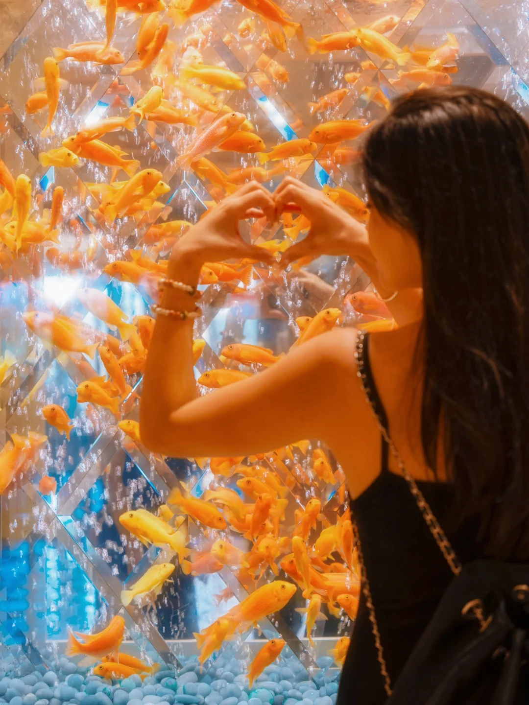 ·来澳门旅行拍照,千万别错过这个“见者发财”的打卡点——永利澳门酒店的发财鱼,太梦幻了,真的很出片,怪不得小姐姐都跑到这里来拍照。这个和永利的发财树在一个酒店,可以一并打卡。