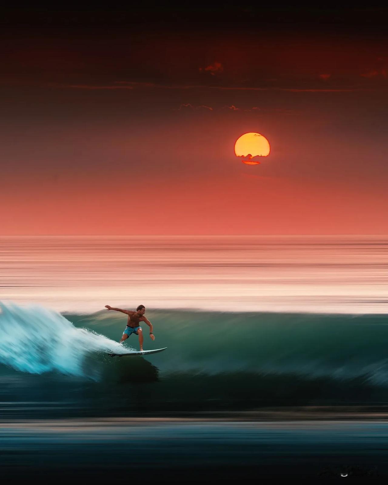 一个人在这美景中冲浪,真的惬意。 摄影丨DIMWORKS
