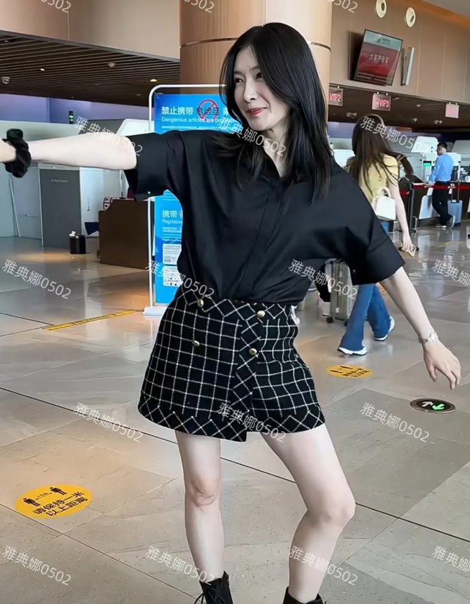 机场偶遇江疏影,本人也太老了,法令纹特别深,笑起来一脸褶子,真人没有照片好看五官