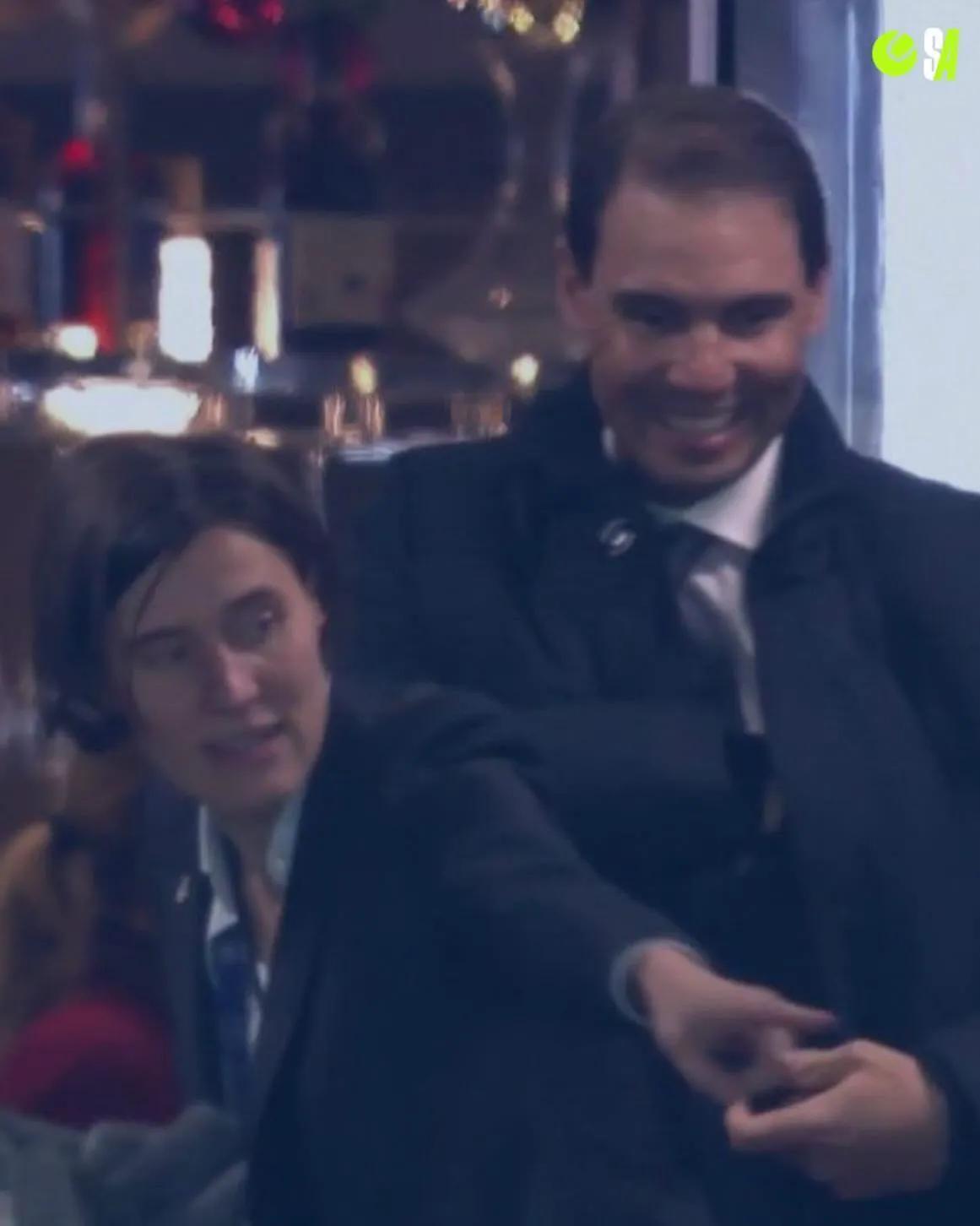 享受退休生活,纳达尔在安菲尔德观看利物浦和皇家马德里的足球比赛。