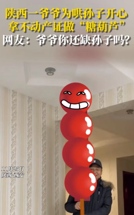 这就叫底气!11月25日一孙子因工作不好找而不开心,爷爷用五本房产证做一米糖葫芦,哄孙子开心!网友:“爷爷,你还缺孙子吗?我要是有这样的爷爷,还上什么班啊,等着继承就行啦!”
