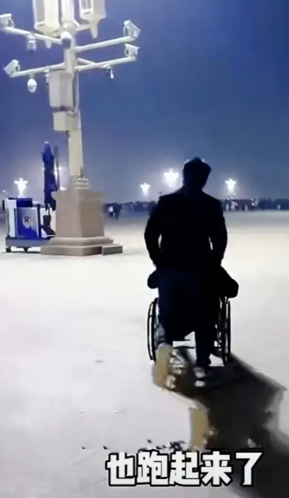 孙子一瞧,也小跑着推轮椅往前奔。