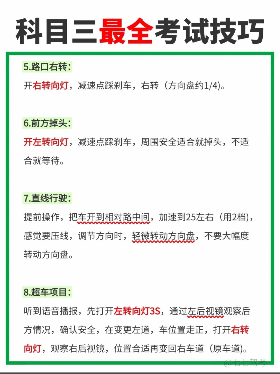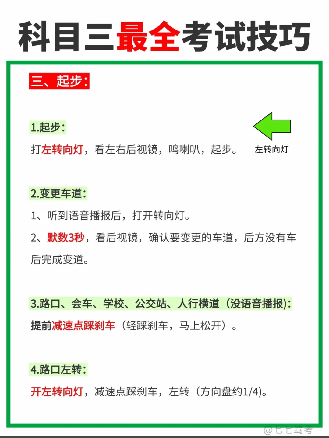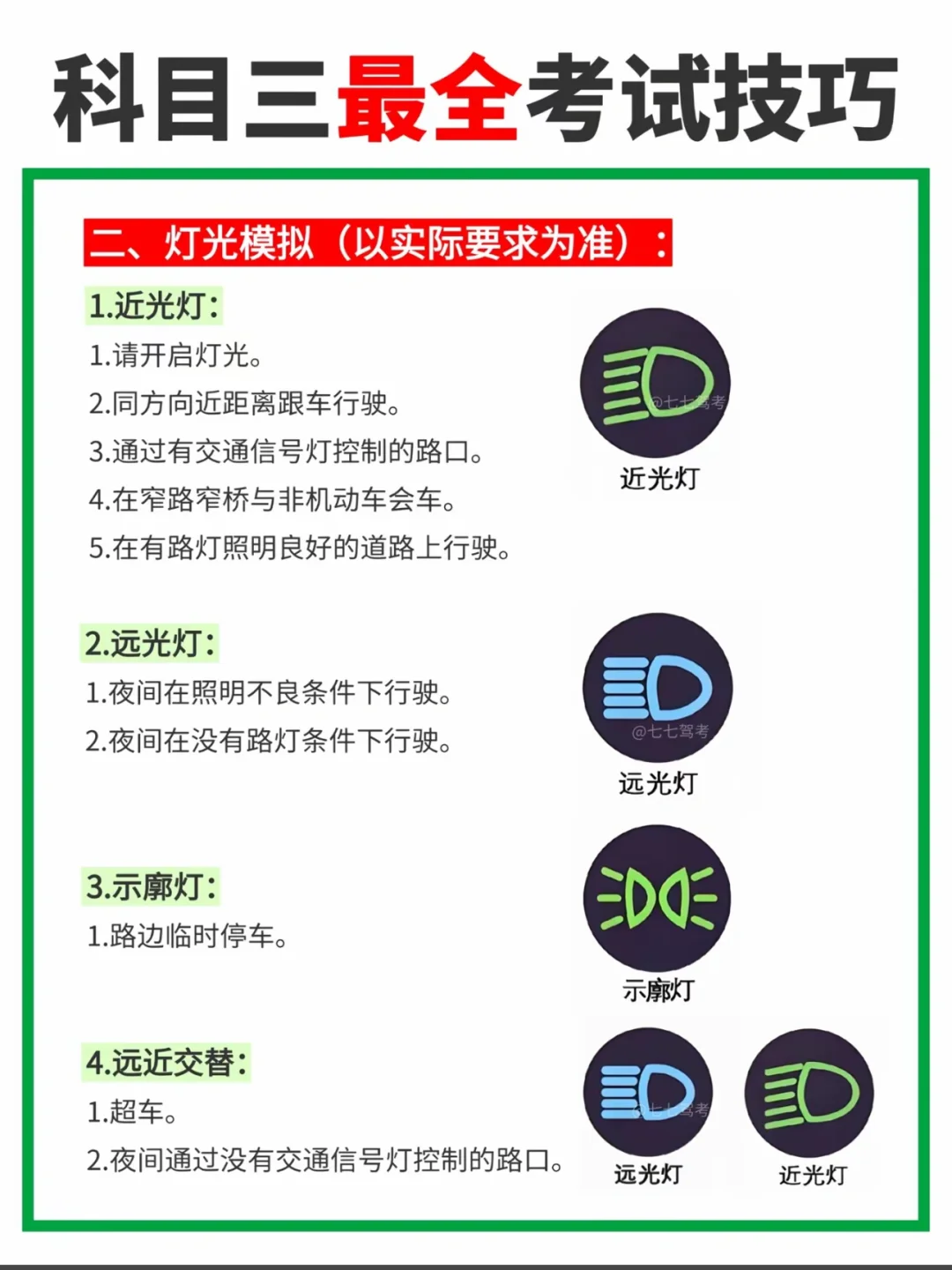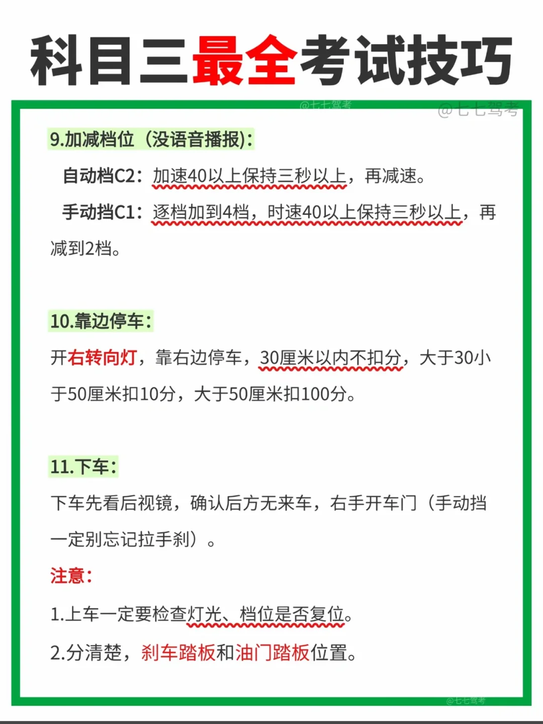 科目三最全考试技巧 、上车准备: 1.调节检查: 不用系安全带,调节座 、后视镜,检查灯光积档位,是否复位。 2.开始考试: 向考官出示身份证,听到语音“请开始考试”,观察后视镜,确认安全右手开门,下车关好车门。 3.按压感应按钮: 绕车一周,逆財鈦方息,用力按压感应按钮2秒,在按压下一个感应按钮。 4 3 七七驾考