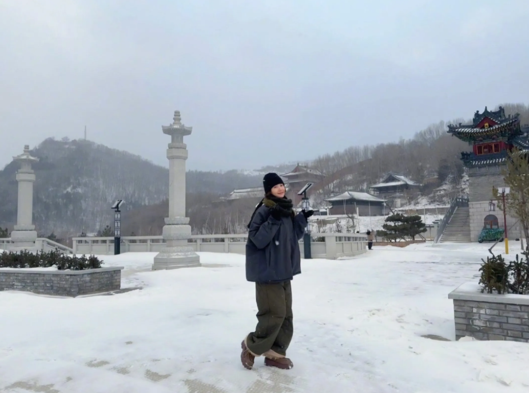 雪景中的金晨,保暖做的很到位,皮肤真的太好了素颜也很美。