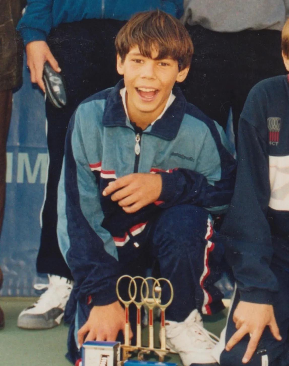 当网球运动员还是小朋友时。 原来费德勒小时候是金发,长大了是黑发。他开启网球职业生涯时,染着金发,一副桀骜不驯的样子,后来变成观众心中的翩翩君子。一路走来,从一个金发碧眼、情绪多变、风格不定的青葱少年成长为一名沉着冷静、举止优雅的体坛名将,是件神奇的事。