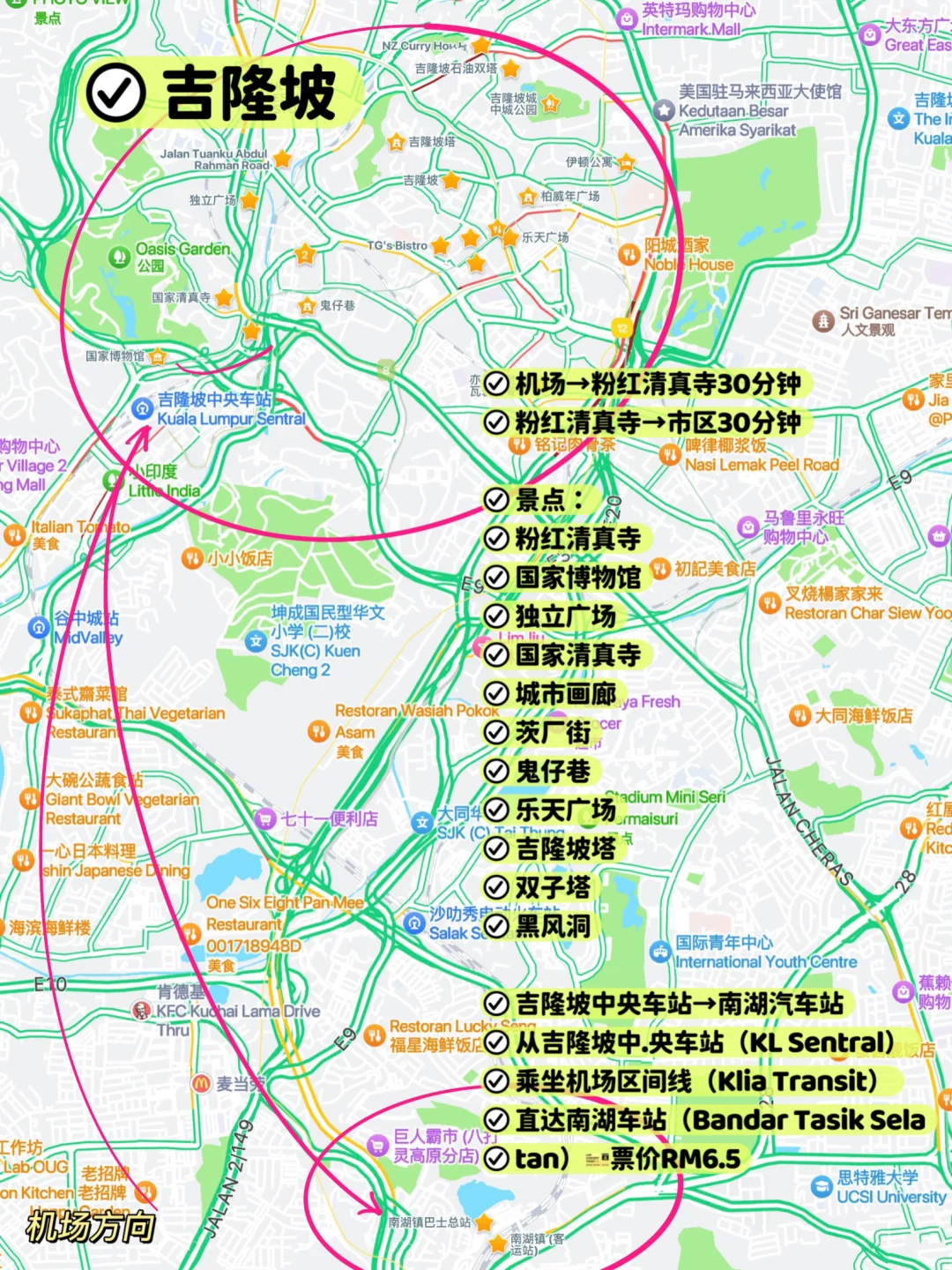 槟城→吉隆坡:机票💰120R,1h