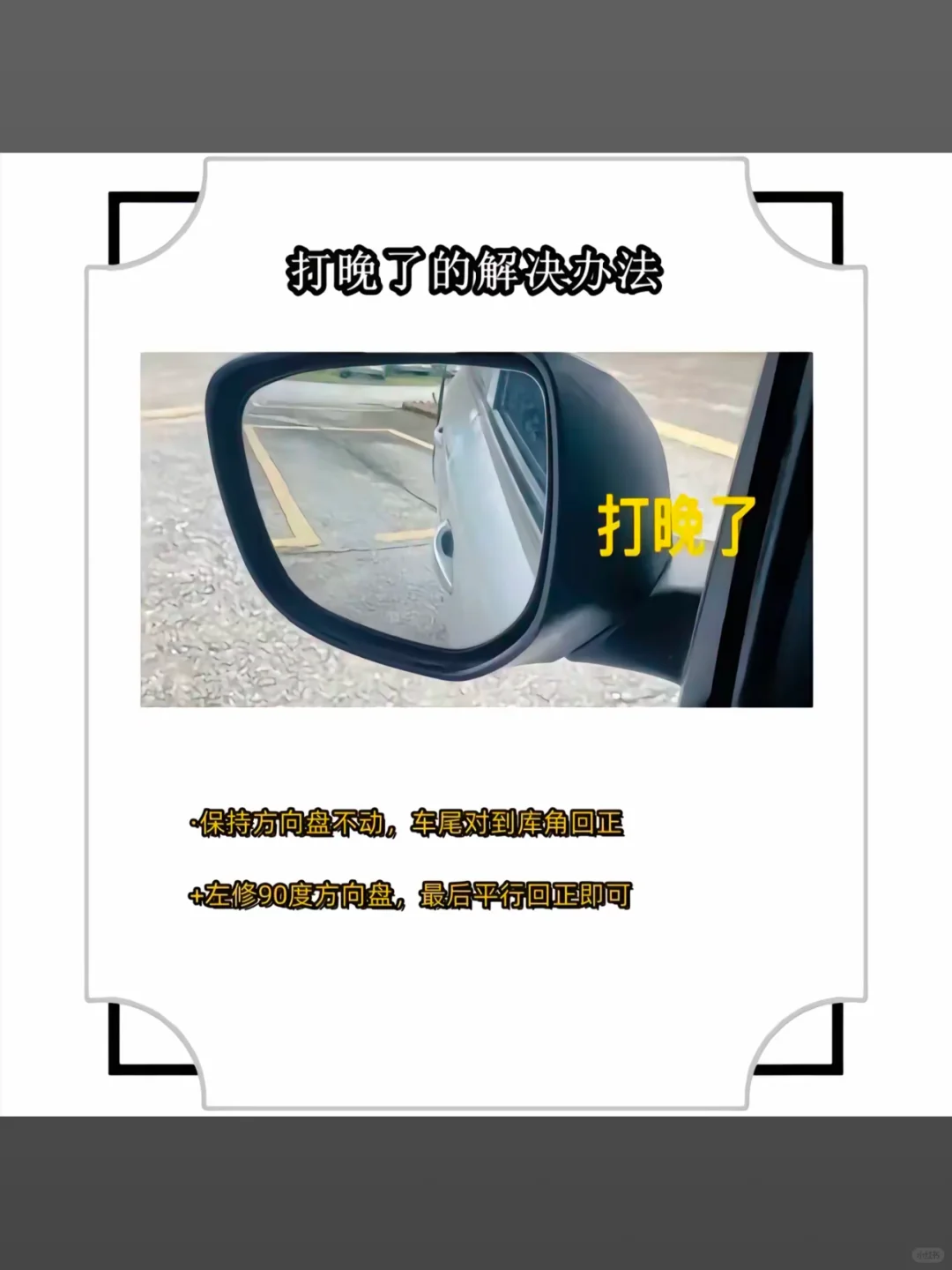 科目二:倒车入库 1 驶入倒库项目 ②停车. 方向盘至高点对准 左肩与停止线平齐 左侧第二根虚线 停车 3 观察左后视镜 2 ③3 左侧后视镜下沿与停止线重合,右打满 4 观察右后视镜 观察车身与库角距离。 4 调整方向,看到库角方 向盘回正 5 1 6 5 看左后视镜当后视镜底部 与虚线位于如图所示 位置时,停车,然后开 6 左打满再回正 往前开。车头盖住前方直线,方向盘左打满,车头摆正,方向盘回正