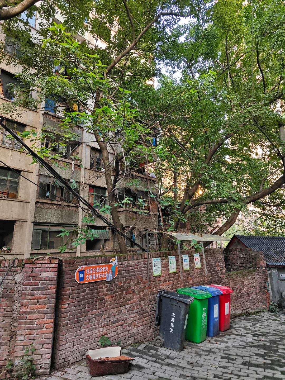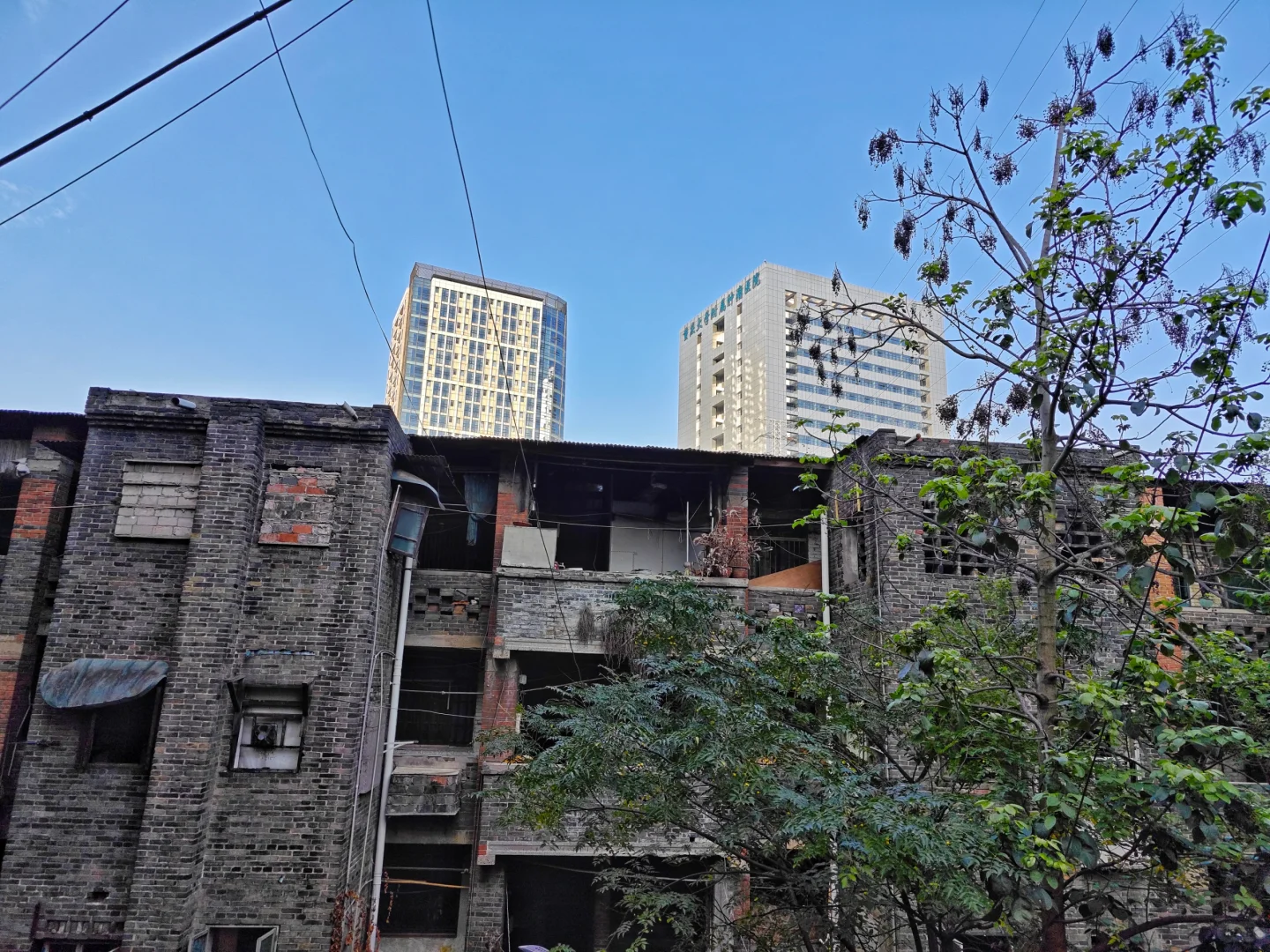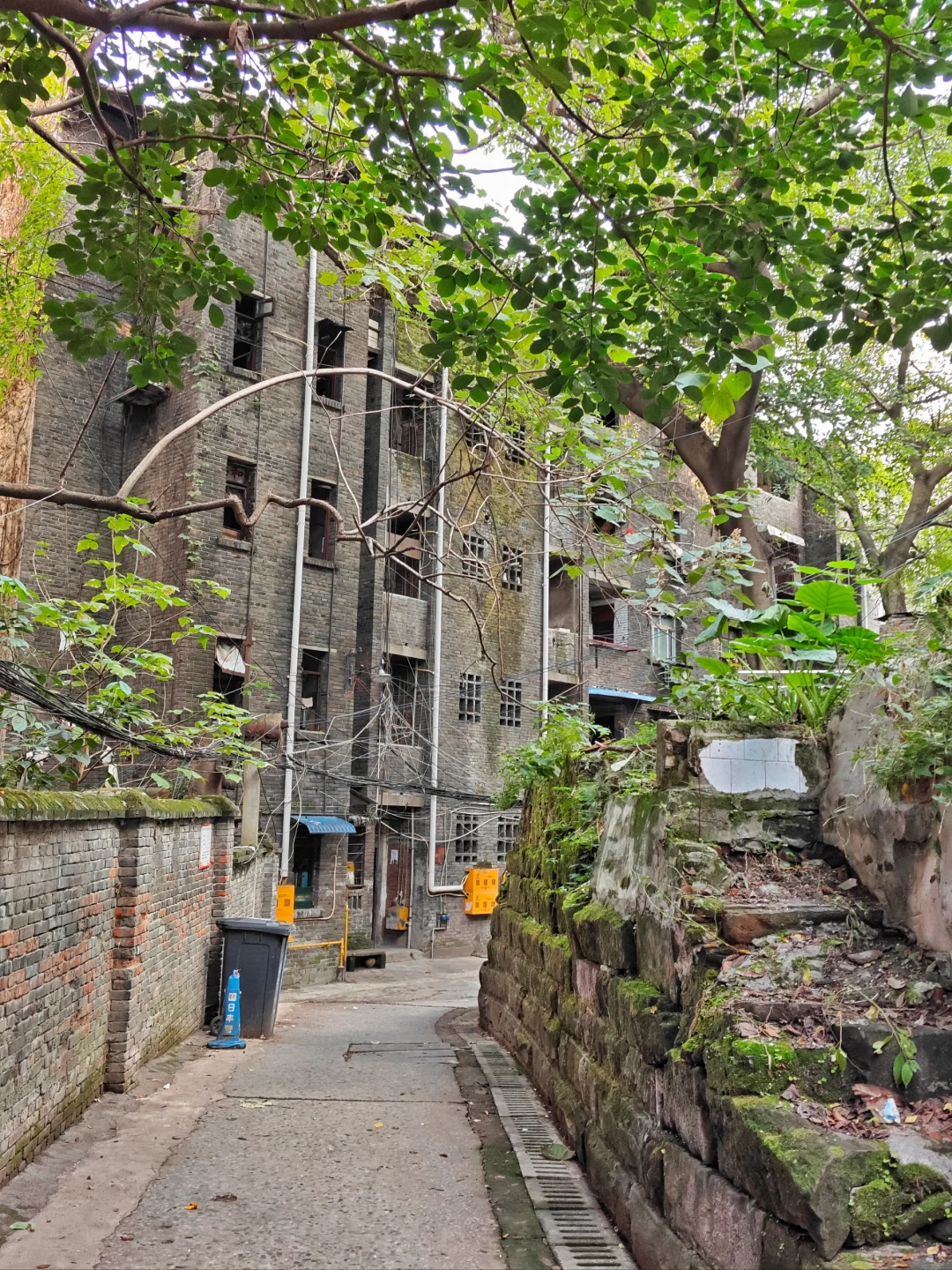 如今,合化厂家属区还在原来这个位置,挨着重棉一厂和二厂,在汉渝路旁边,沙滨路上面,沙坪坝老城区的密集房屋中隐藏着。家属楼从1950年代到1980年代都有,太破旧的已经有些废弃了,但还有不少住着人,主要是退休职工。他们平时就过着普通的退休生活,周围环境破旧杂乱,不过地理位置方便,生活倒也过得去。