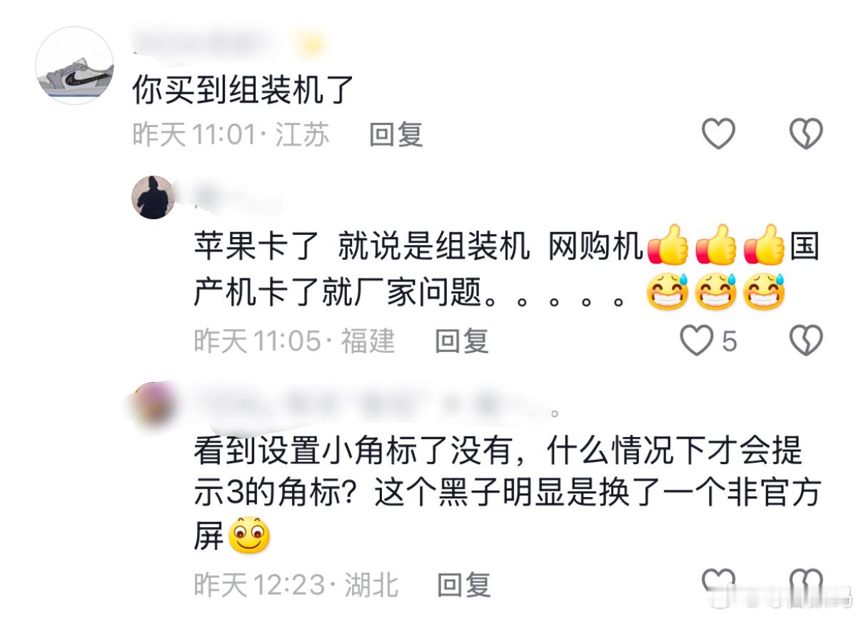 我之前不是发了一个iPhone16 Pro卡的视频吗,隔壁平台评论区炸了,好多都在说我买的是假货,然后还有侦探说我设置的角标为什么是3,一定是我换了屏幕黑苹果[摊手]