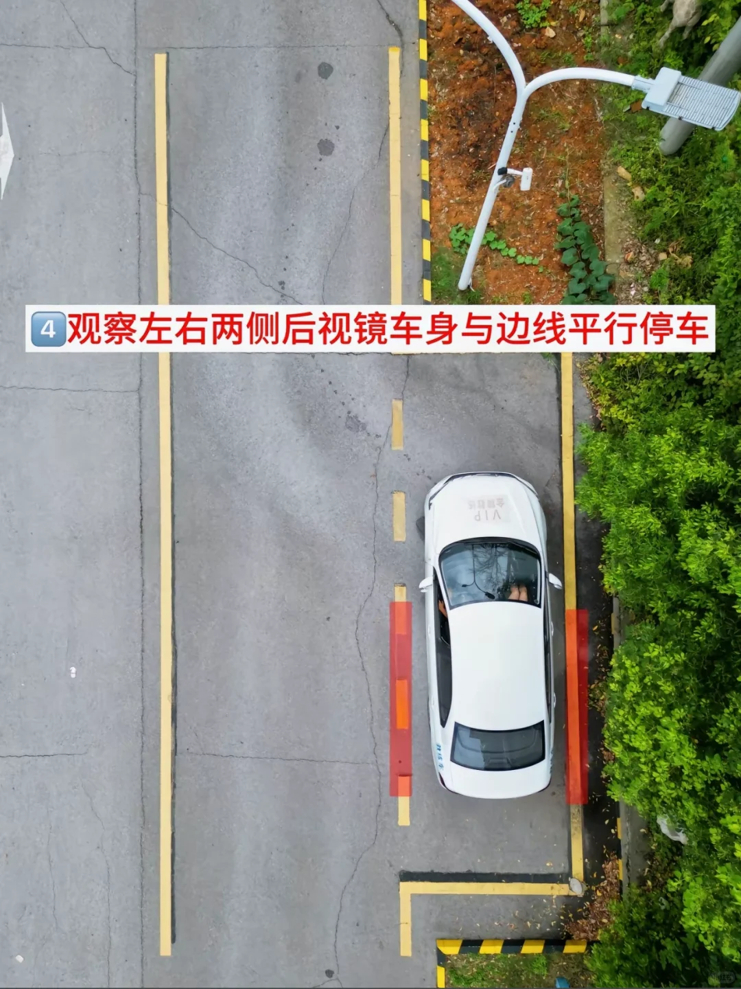 侧方停车看这篇就够了 3.挂倒挡,扭头看右后视镜,等到看不到库角时,立即往右打满方向 盘 2 3 2.车头看不见黄线,扭头看右后视镜,后视镜完全看见库角后停车。 4.低头左侧后视镜,出现第二个库角,立即回正方向盘。 4 5 5.可以伸一点头,看左侧后视镜,等到后轮压到虚线,立即往左打满方向盘 6.等车身形成后窄前宽时停 车 窄 宽 1 1.领线:雨刮器最高点对准獎线
