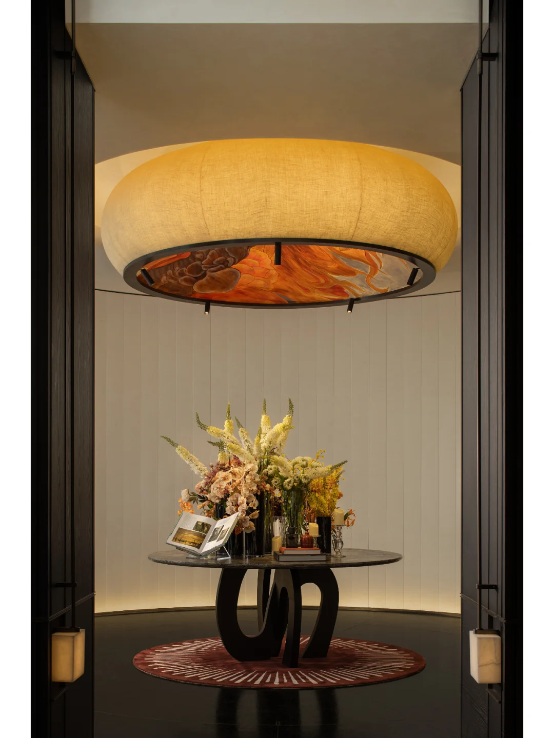 遵循「润系」简美东方的空间基调,设计选取质感温润的色彩与材料铺就空间底色,替代华丽与繁复装饰,期望以材质本身具备的质感,带来感官上的触动。