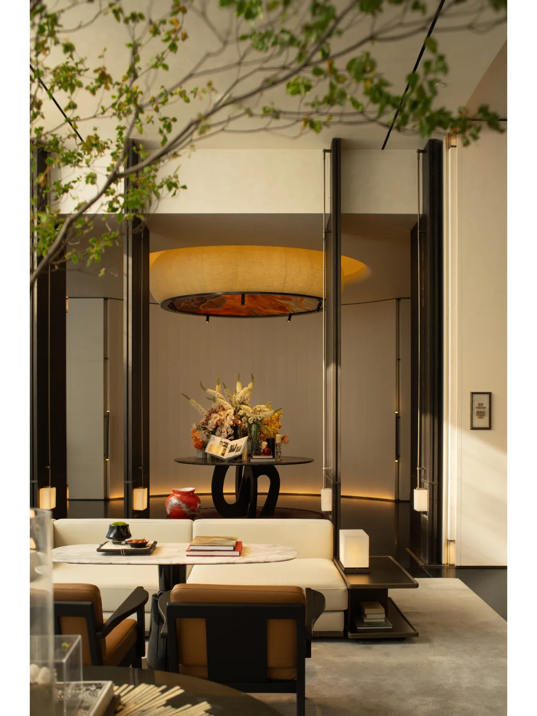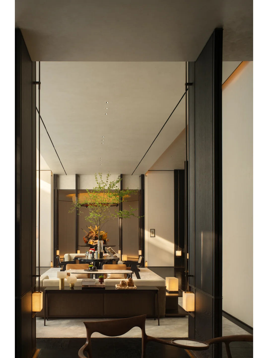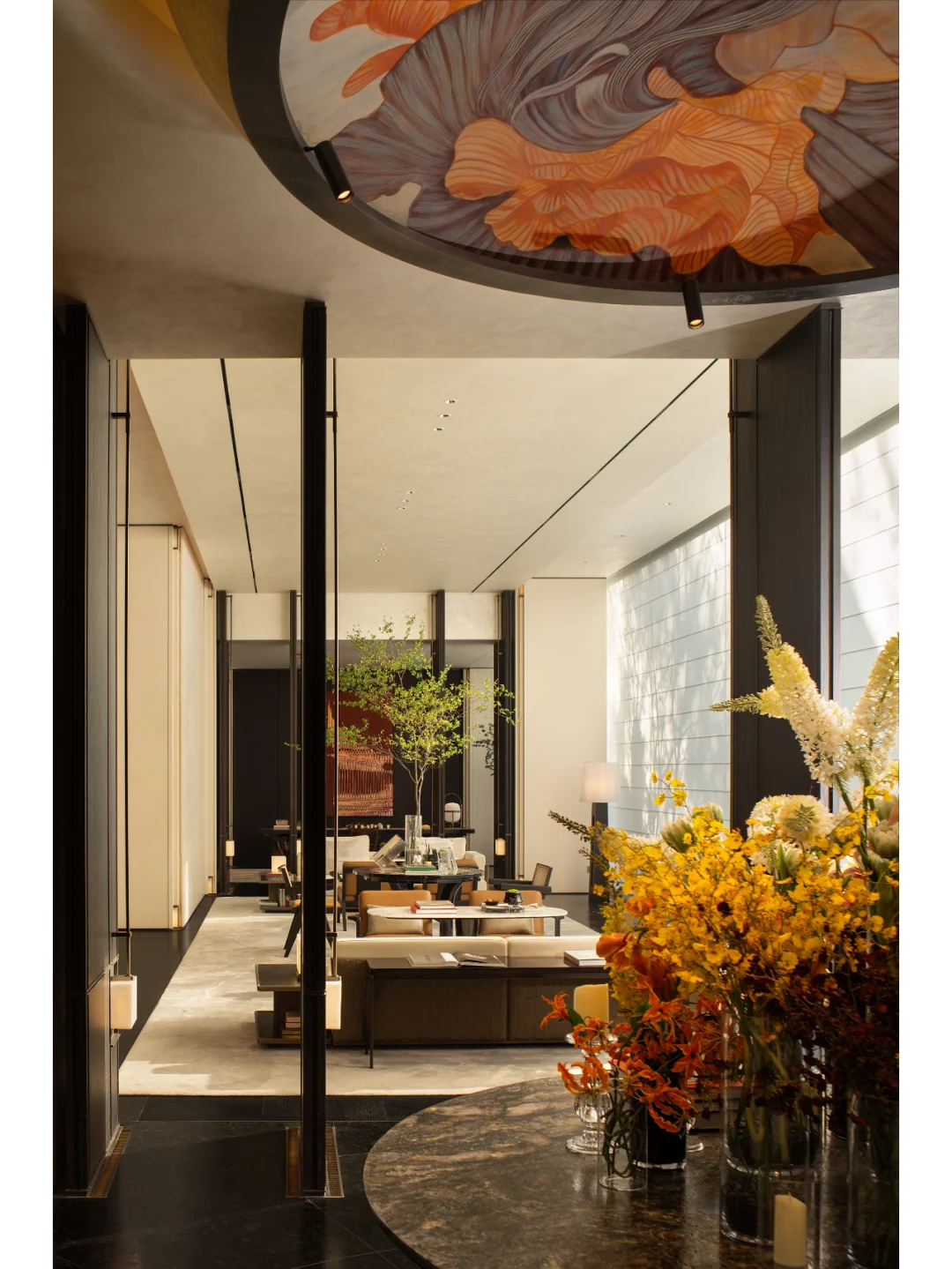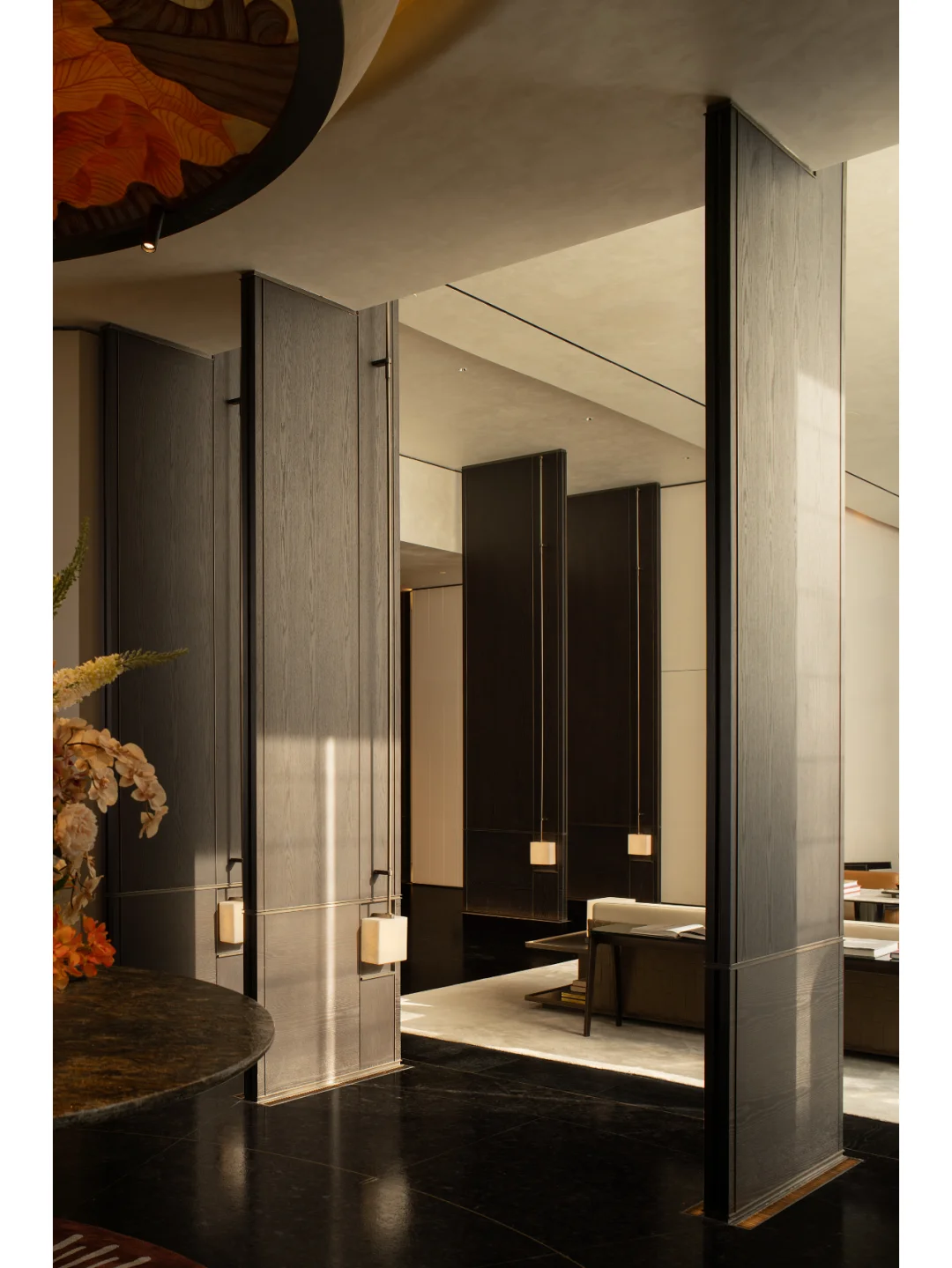 于北京润府会所,栋三尺循北京印象,融入京城色彩美学、传统建筑形制与文化底蕴,以当代手法将北京城市的形、色、意融入空间流线,创新性缔造「新京华美学」,转译雅奢礼序的京城生活气质。