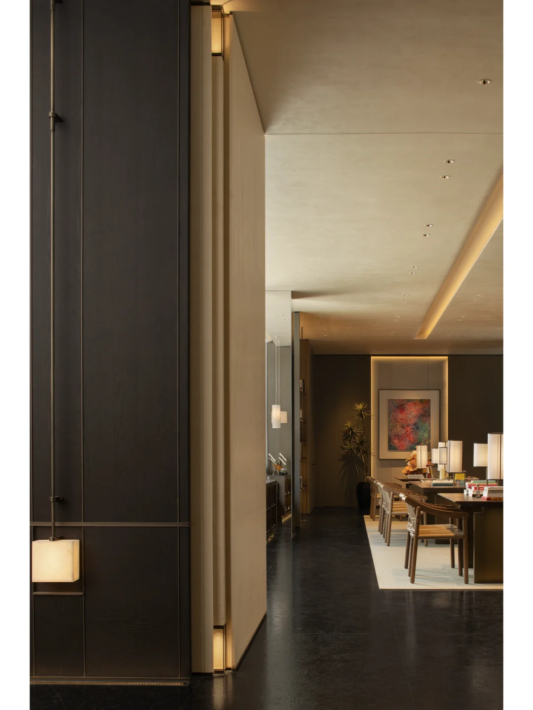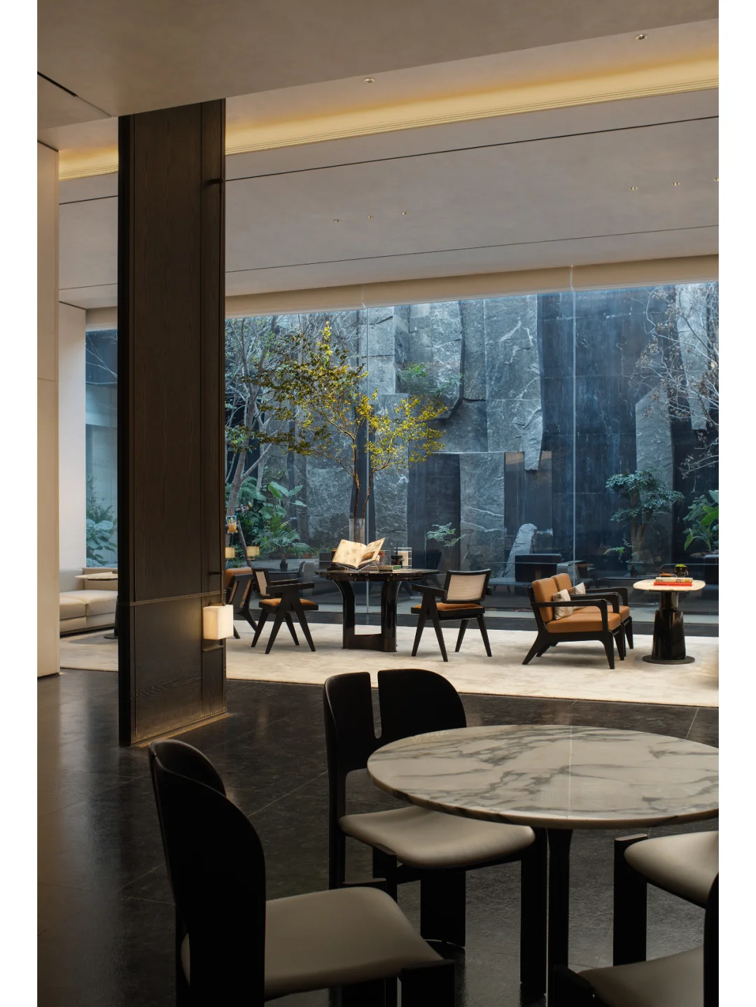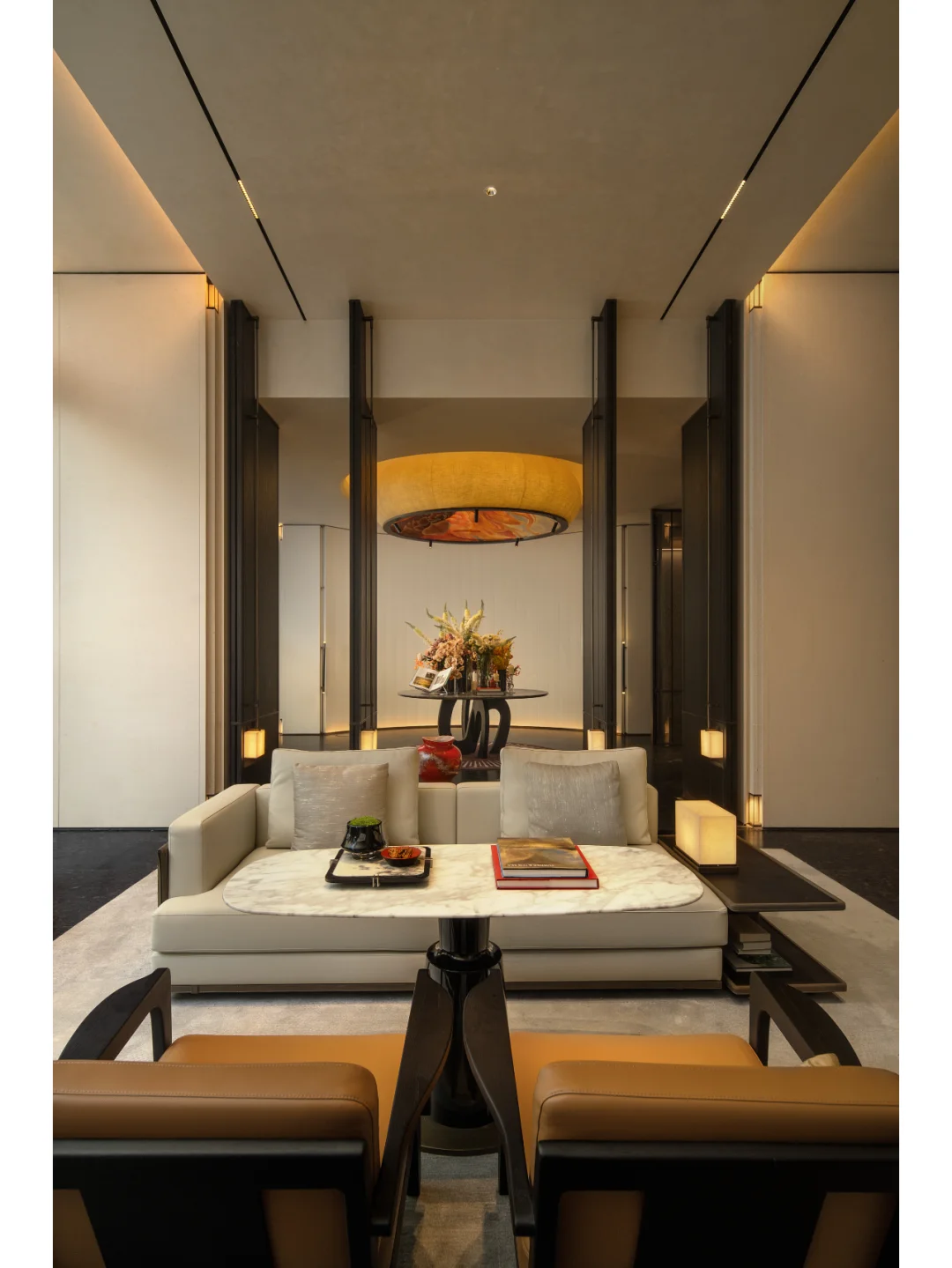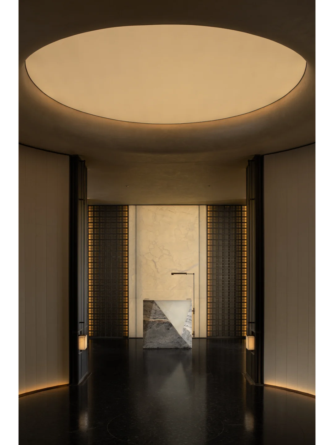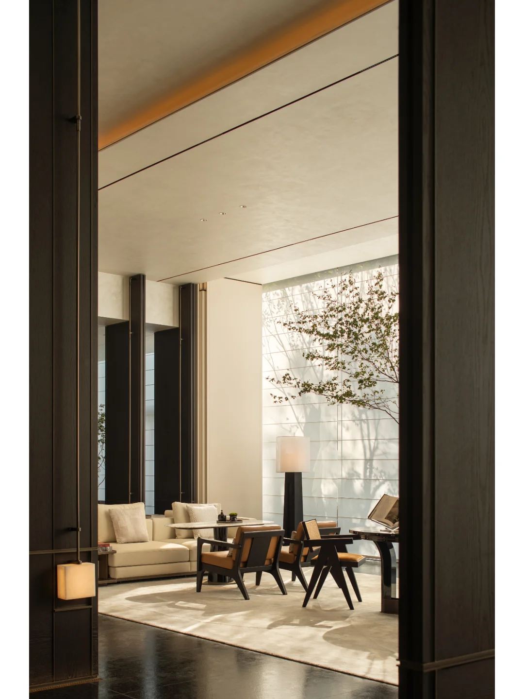 于北京润府会所,栋三尺循北京印象,融入京城色彩美学、传统建筑形制与文化底蕴,以当代手法将北京城市的形、色、意融入空间流线,创新性缔造「新京华美学」,转译雅奢礼序的京城生活气质。