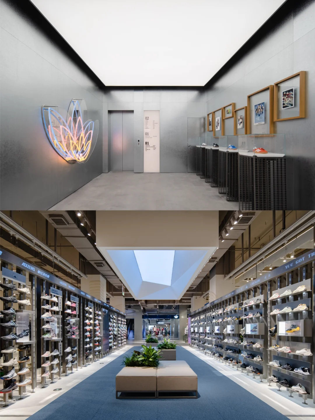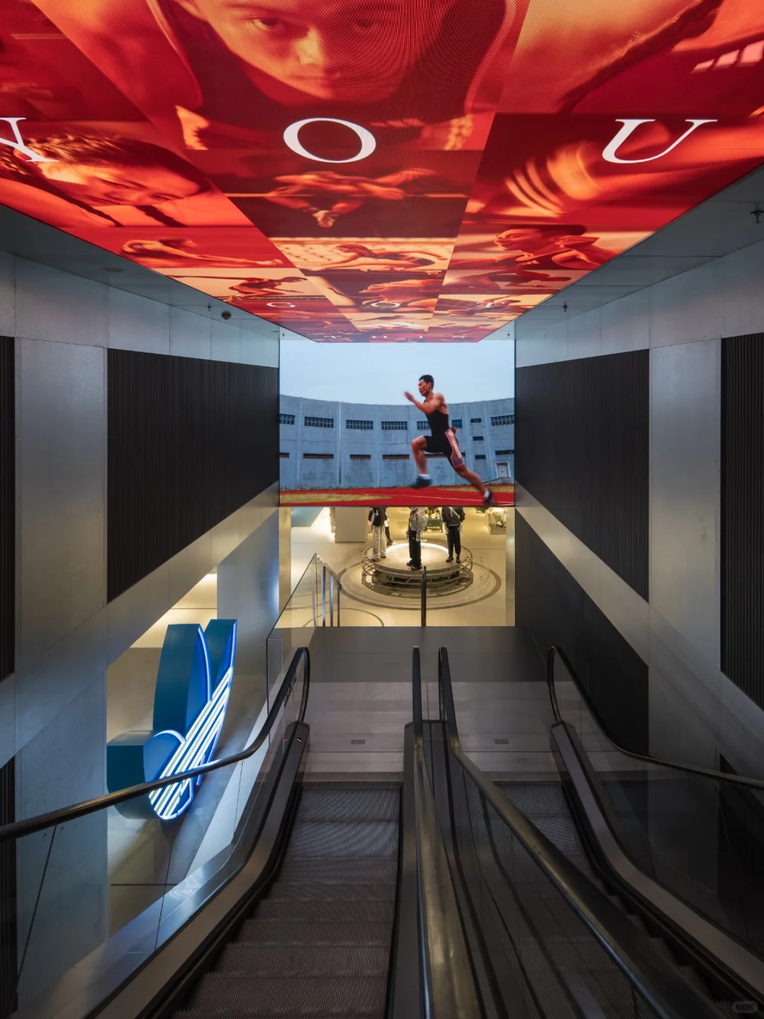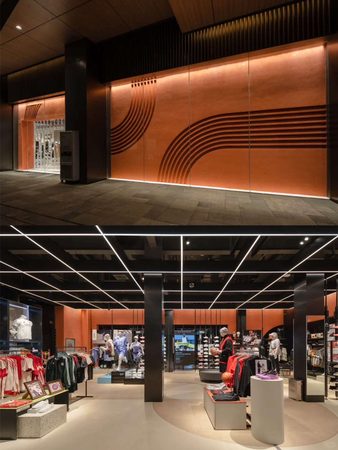 在不同楼层巧妙的串联品牌故事与购物场景,打造叙事空间,让顾客沉浸在丰富的运动穿搭灵感中。
