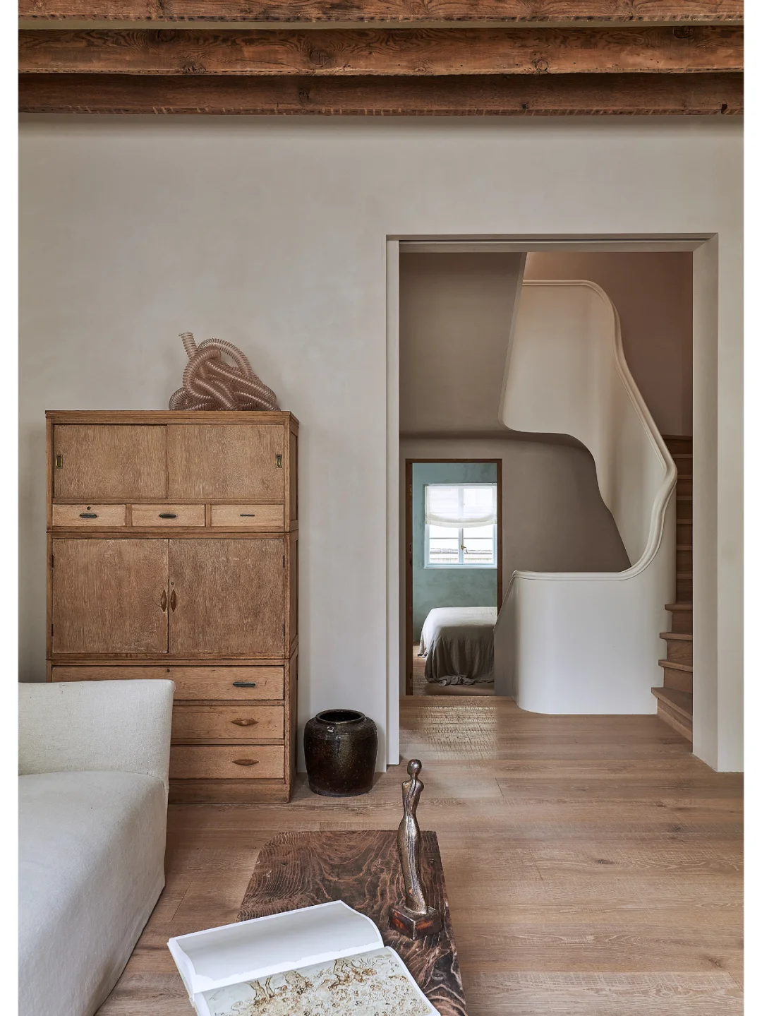 修复过程中拆除的老砖,仍然使用在了墙体的砌筑中。木梁拆下后进行了细心编号,在经过消毒及打磨后用作二楼家庭室及卧房的外露房梁。其它木制品如地板、家具等,都以老旧木头定制而成。该建筑内的历史物品被尽可能地再利用,修旧如旧不是简单的堆砌,而是使其重新焕发生命。
