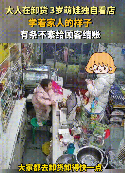 这孩子将来一定当老板!11月2日,超市老板正在外面卸货,3岁女儿独自看店,却正巧