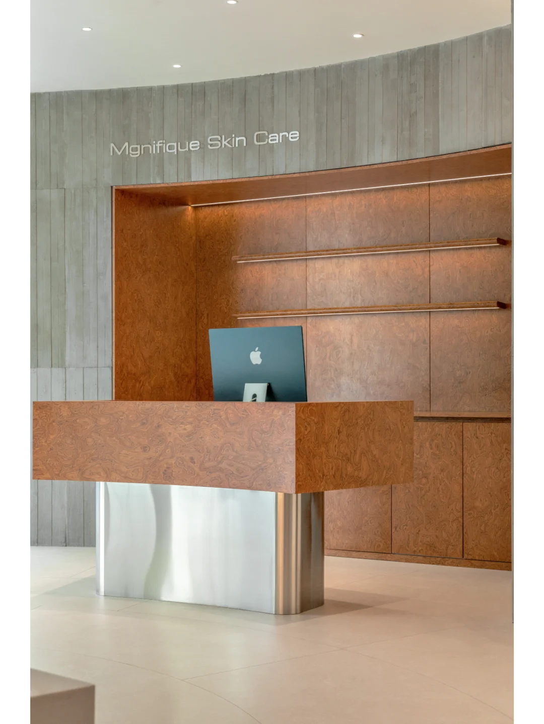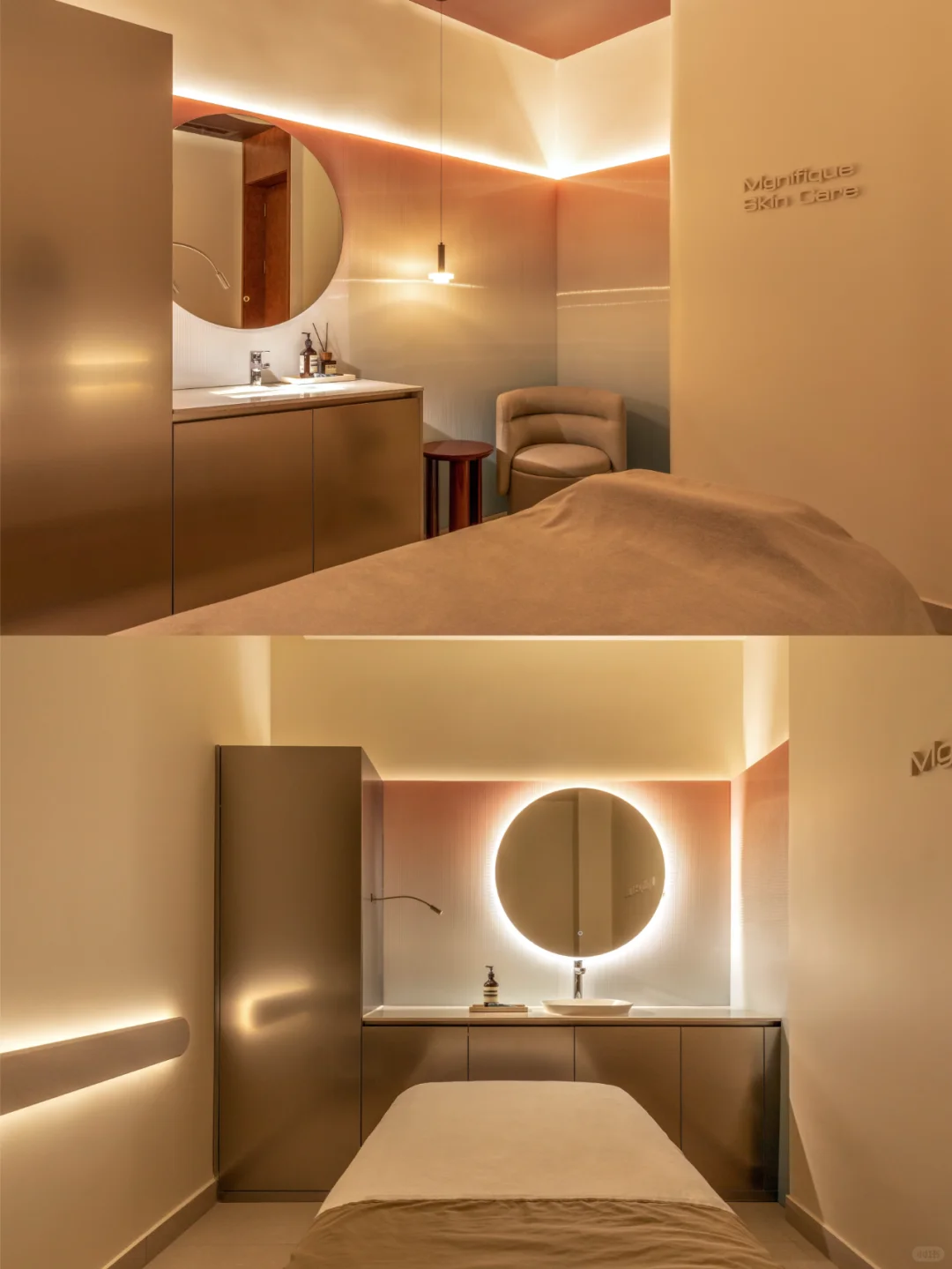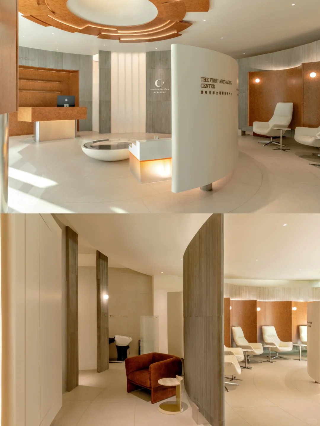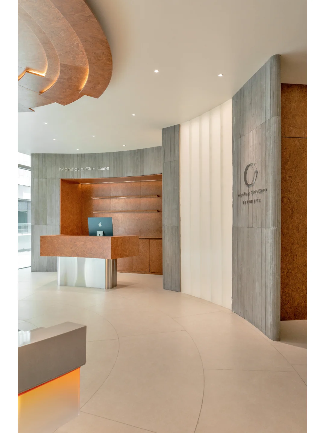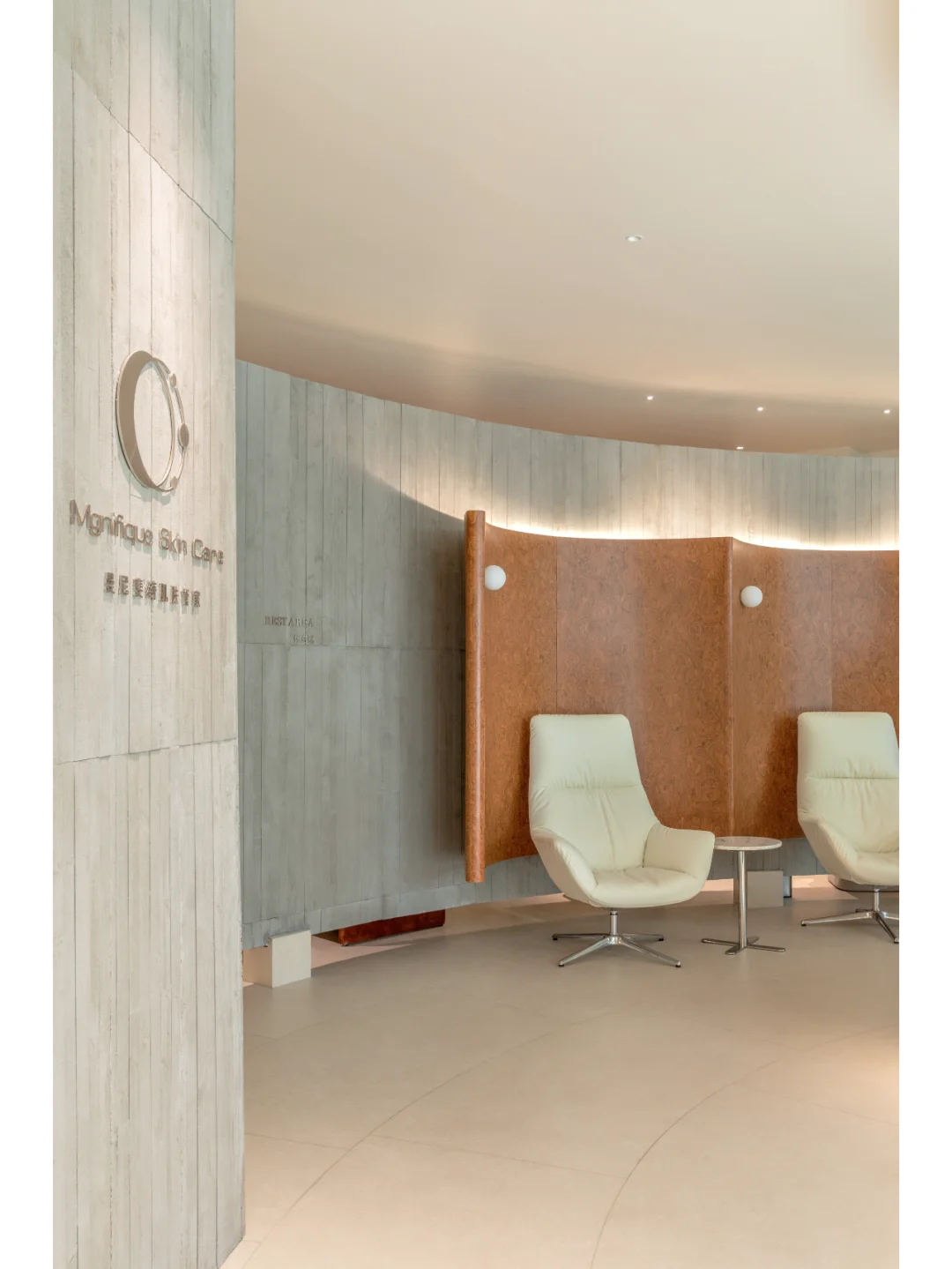 SNCE叁生设计打造的高端连锁医美空间Mgnifique Skin Care曼尼斐绮“涟·漪”,设计简约,空间布局错落有致,连续叙事索引激发人的好奇心与探索欲。整体空间层次丰富,融合医疗健康之美、简约空间之美与高雅艺术审美。