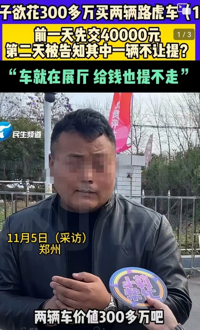 河南,郑州。男子拿着300多万买了两辆路虎揽胜,提车时店家却只让他提一辆,男子气愤不已:“我钱都给了,家里摆了十几桌酒席等着呢,车提不回去这不是让我丢人吗?”