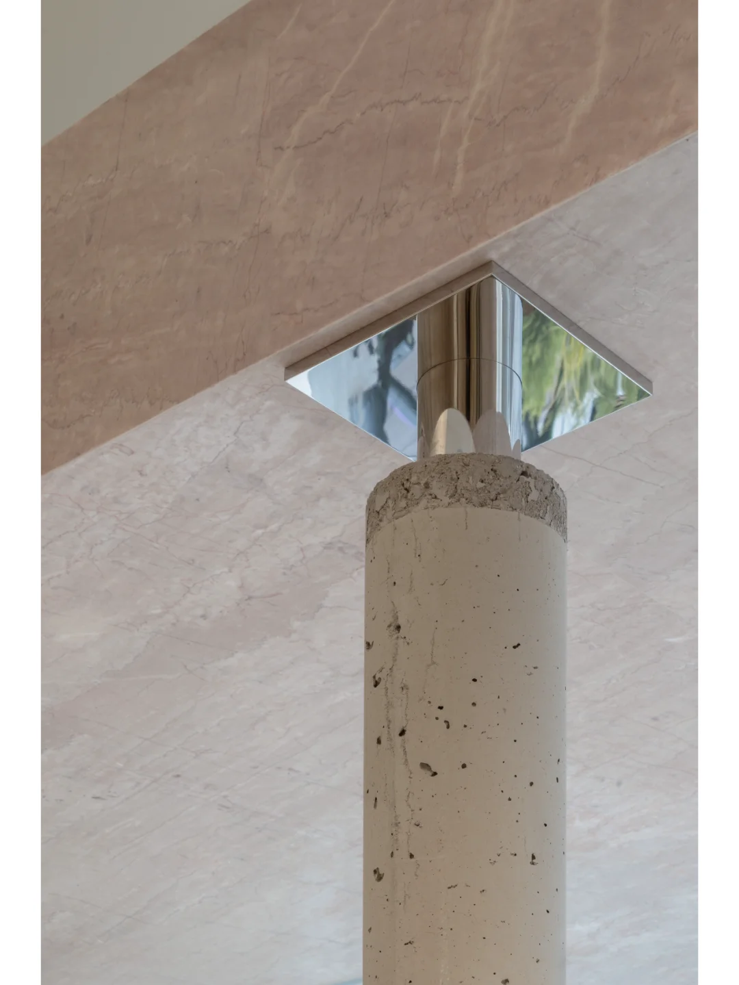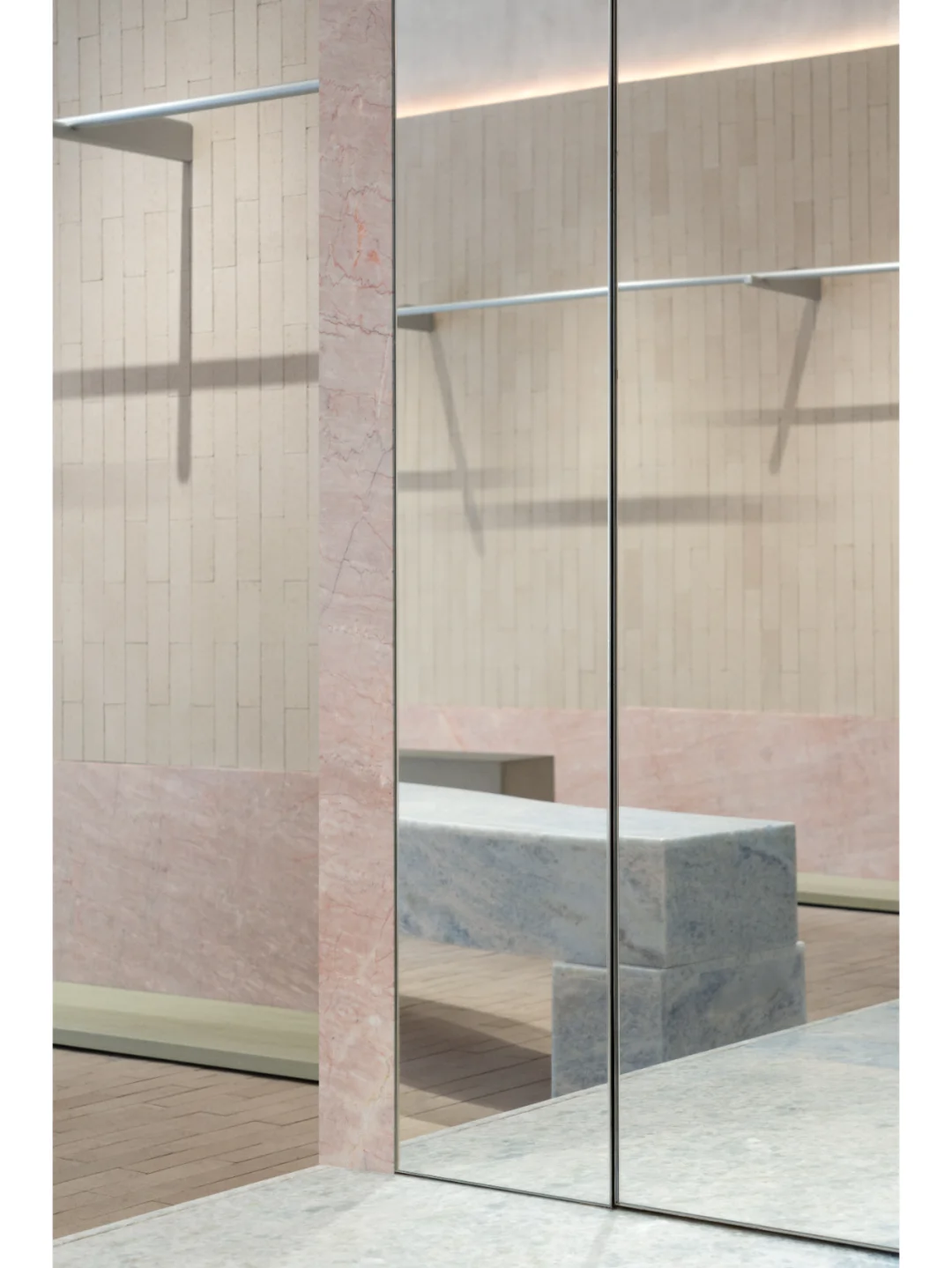 灰度大理石材质的大面积使用,在保持空间连接感的同时,将不同区域自然划分。特别采用意大利回收砖,砖面保留天然气孔的粗粝感,因手工烧制而呈现出颜色的自然变化,带来随机性和不规则的感受,在井然的秩序中营造隐藏的惊喜感。