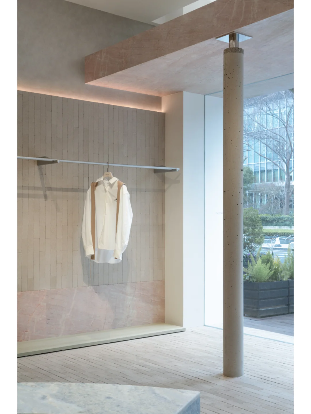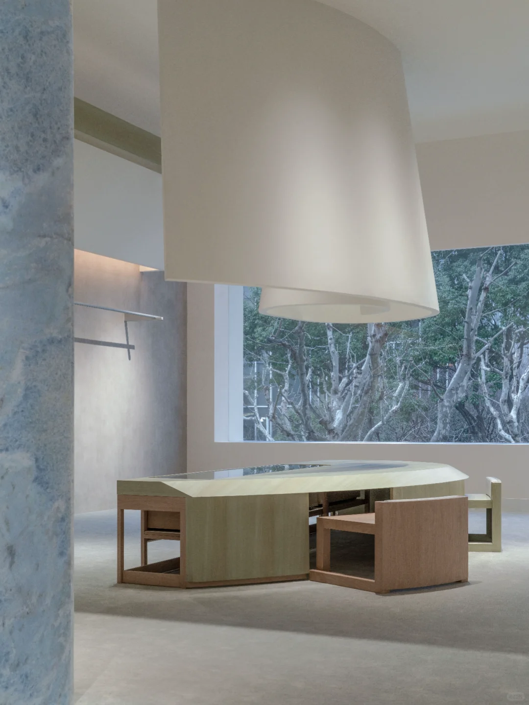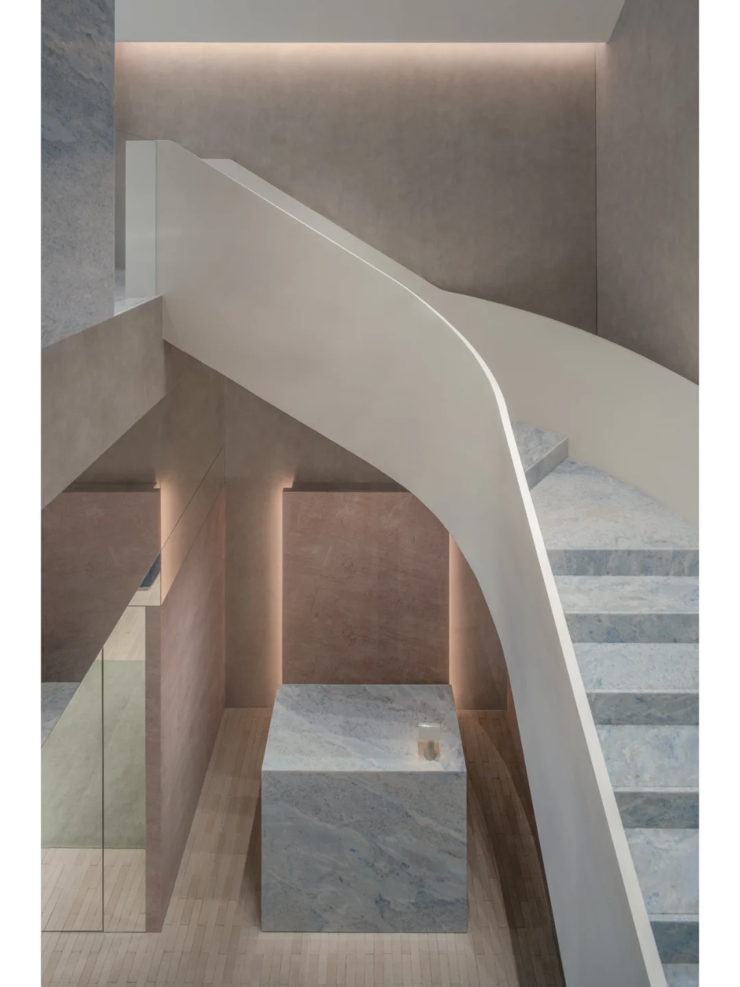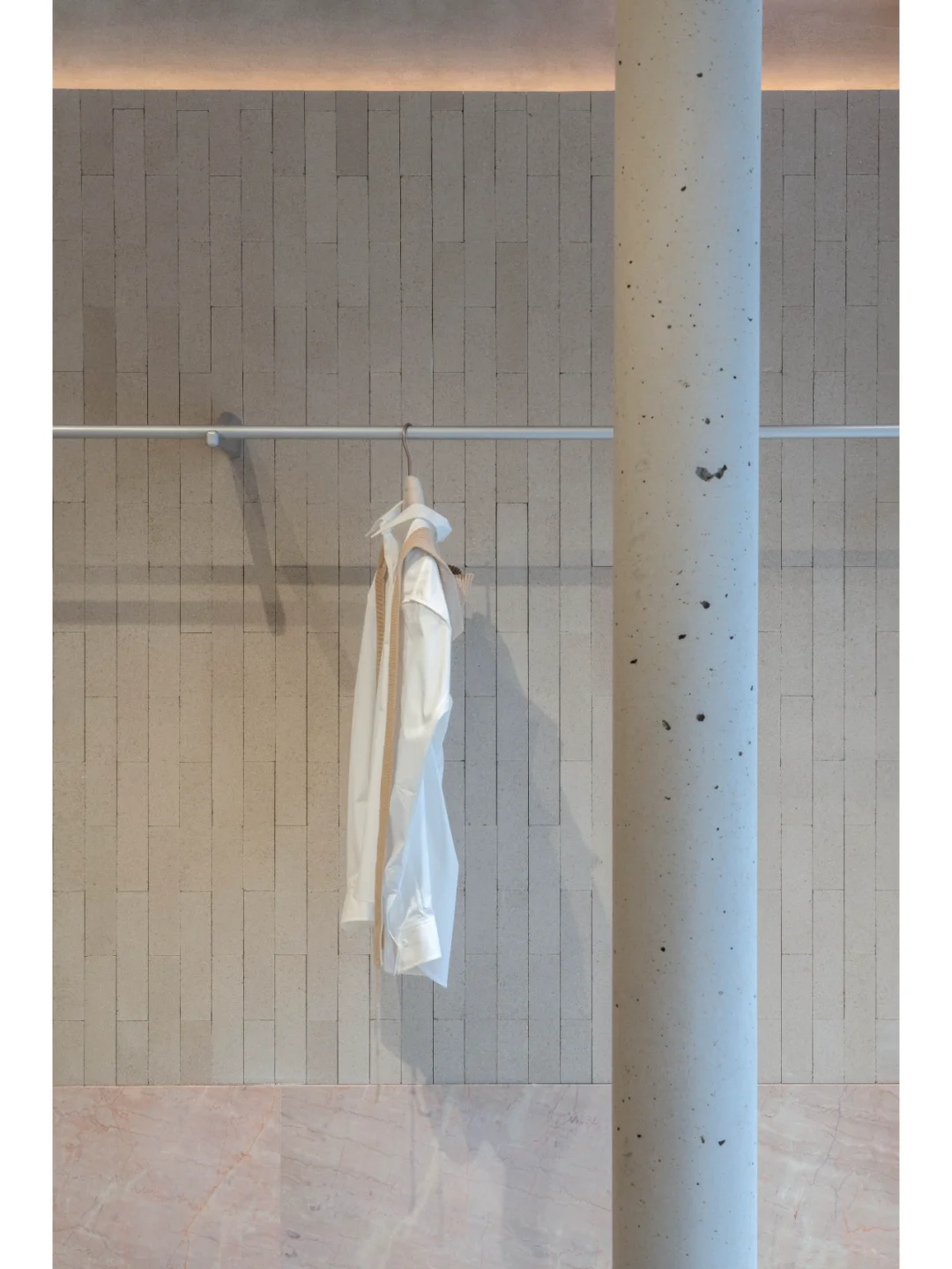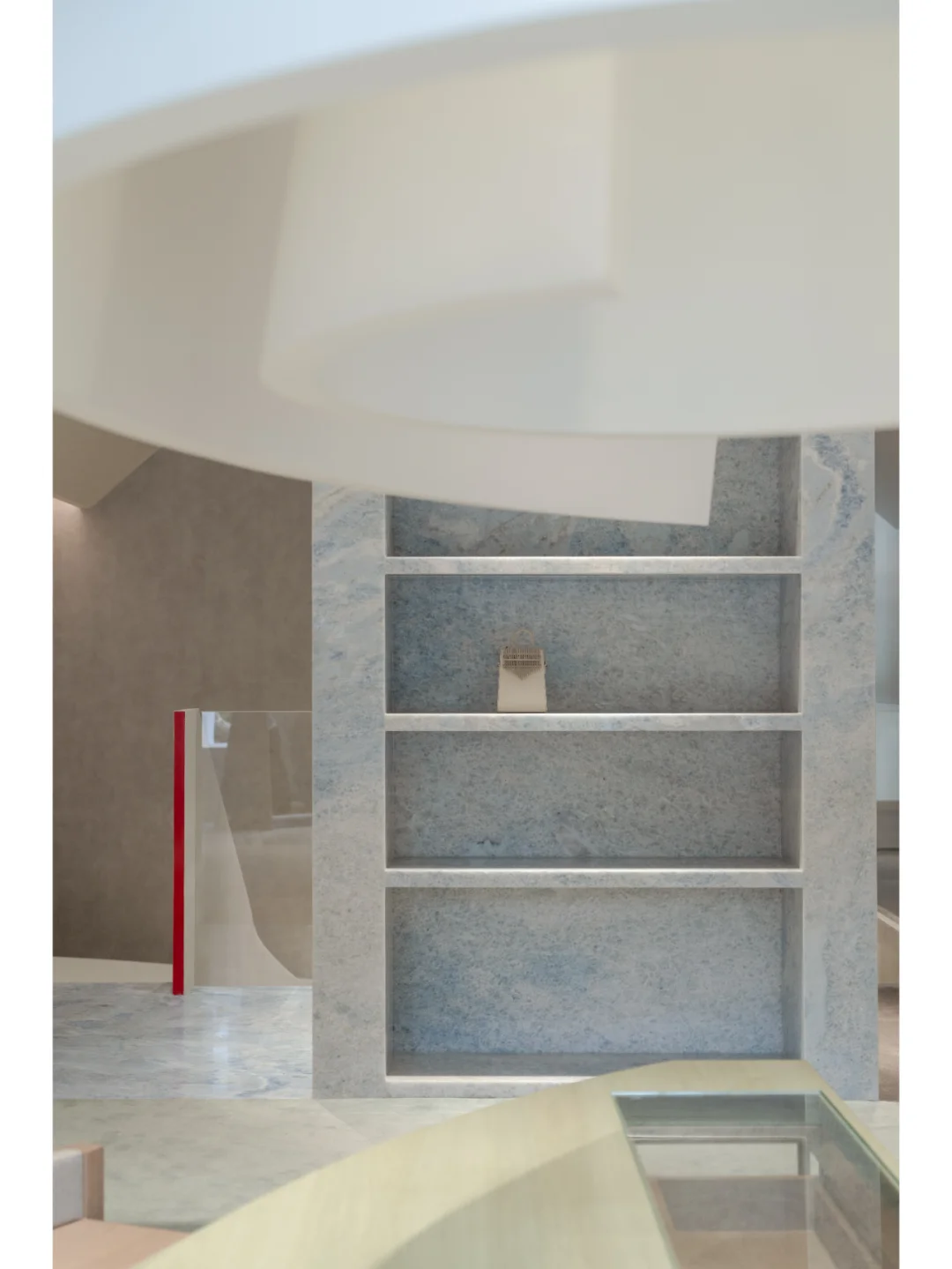 结构向内延伸,借由体积与材质拉升空间质感,触发观者的情绪。空间化身故事的讲述者,诉说着品牌的全新探索——“先锋的和谐主义”。