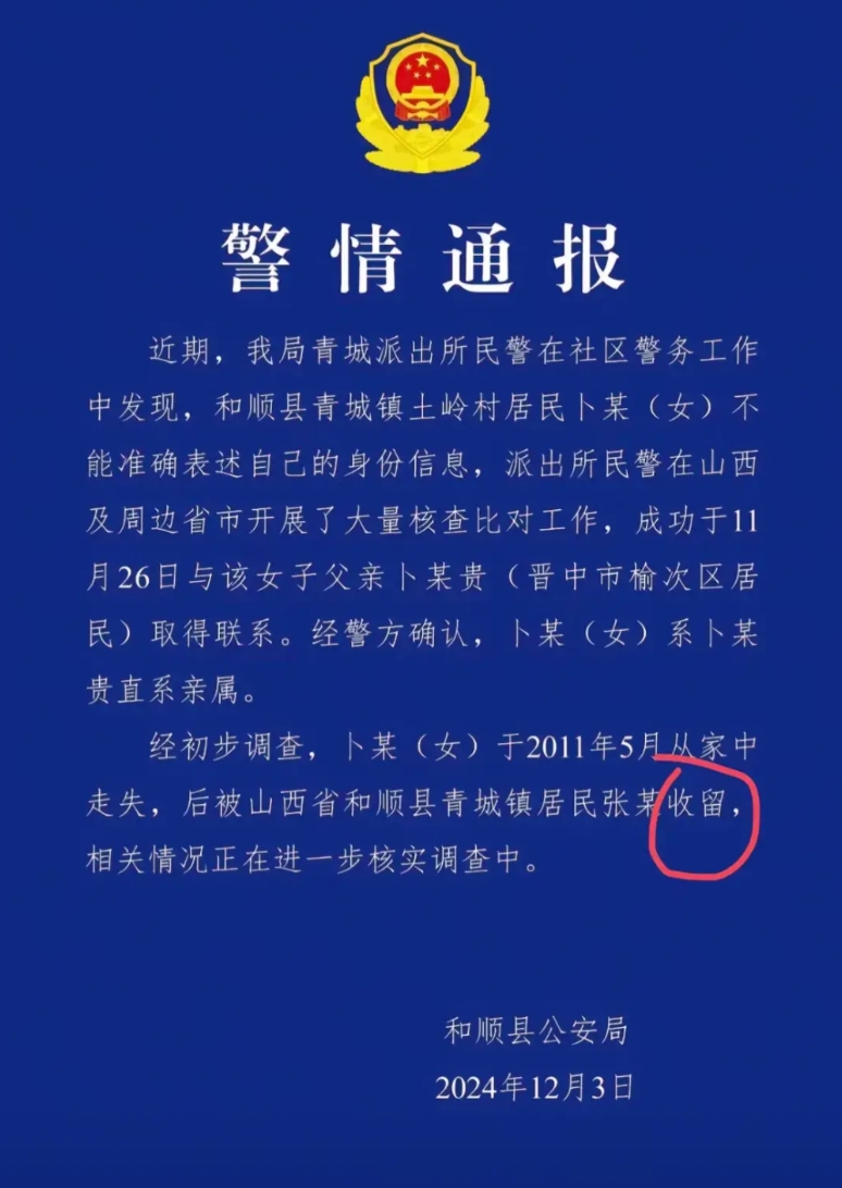 最近山西和顺警方因为“患精神病女硕士”被找回一事给骂惨了,原因就是他们在发布通告时把“农村老光棍拘禁精神病女子”写成了好心“收留”。