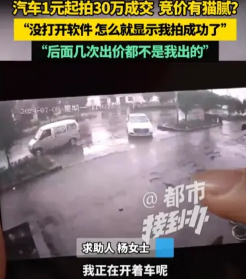 (主要信源:都市报道《汽车1元起拍30万成交,竞价有猫腻?“没打开软件 怎么就显示我拍成功了”》)