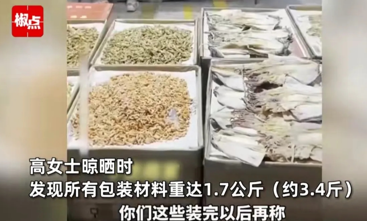 福建福州,女子买了22斤海鲜干货,花了3000多元,可她回家发现,干货不但发霉了,光装干货的塑料袋就有3.4斤,将近460元,女子气的不轻,真是太坑人了,她找到卖干货的老板,对方理直气壮的说:你有我缺斤短两的证据我认罚认赔。后来怂了:我们这一行默认包装袋和干货一起称。