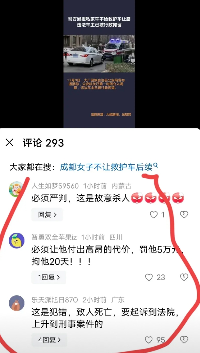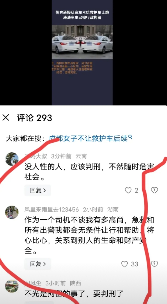 大家别着急!关于河北廊坊私家车,阻挡救护车导致老人错过救治黄金时间去世这事。 警方虽然把私家车车主,给抓了起来。不过网友们,对警方的做法并不满意。大家觉得老人去世,责任全在司机。现在应该对司机进行刑拘而不是行政拘留。有部分网友猜测,这个白车车主可能在司法机关有熟人。 个人看法,说错勿喷。熟人帮忙,也是分事情的。像这种死了人的事情,大家觉得人家会愿意管吗? 这事目前警方也就是简单了解了下,先把当事人给抓起来。等警方取证完,司机够不够判刑那是法院说了算的。就算司机没有被判刑,家属还是会起诉的。反正这次司机不付出点代价,这事不算完。