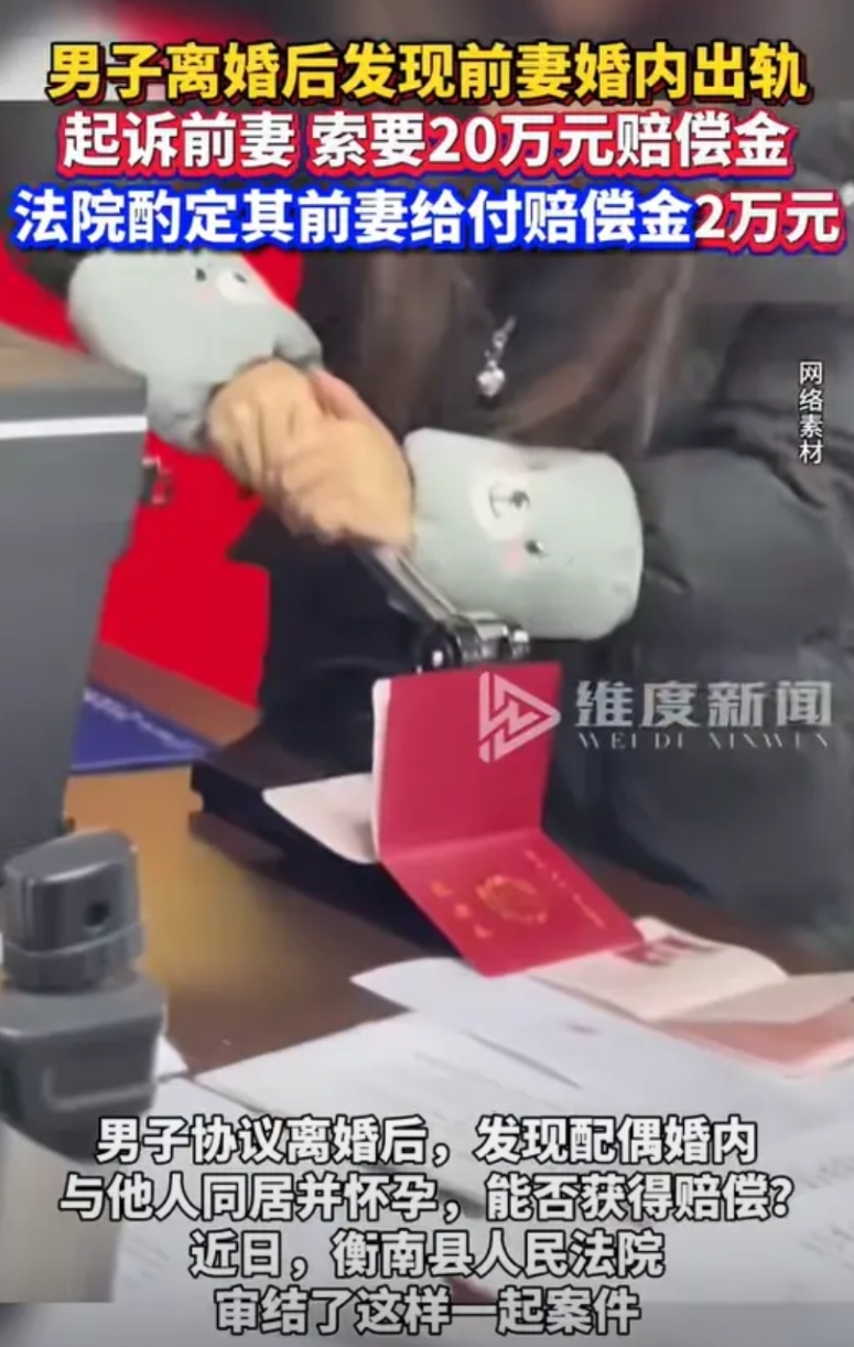 (来源:阜阳新闻社2024年12月9日关于《协议离婚后半年,前妻生子,男子发现前妻婚内与他人同居并怀孕,向法院起诉索要20万赔偿金》的报道)