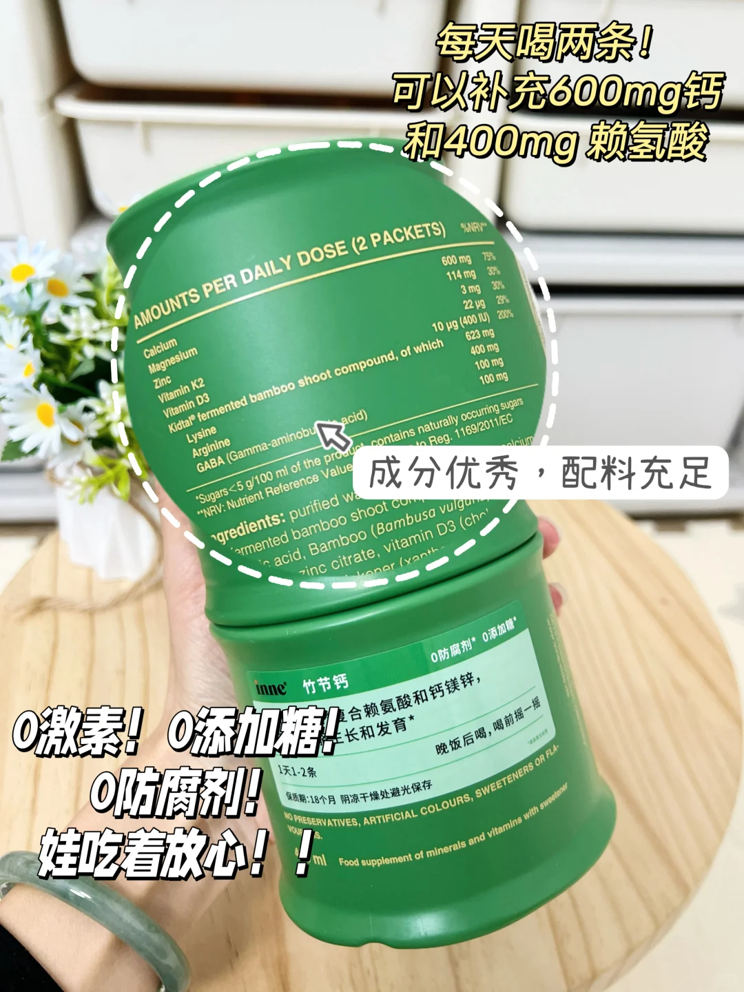 现在妈妈们可真的太拼了 毕竟都想自家孩子各方面拔尖! 我自然也不甘落后啦 老公不够高,那我就卷我的前世小情人 自家Boy高高帅帅的,带出去倍有面儿呀! - 很多妈妈都知道 6岁之后的小朋友进入猛涨黄金期了 孩子长得慢,咱心里干着急真没用,得早早行动起来! 我除了多带孩子出门打球、跑步多运动,晚上早早睡觉外 还挺注意营养补充,我家孩子坚持补充的inne竹节钙 它升级的新口味太合我儿子口味了 每天都会自己乖乖炫,根本用不着我提醒 给孩子冒个添加“助燃”剂 就不怕成长踩不动油门 离我养出高帅Boy又进一步! - 6岁以上的孩子每天要摄入1000mg的钙 我计算过,通过饮食可以补充上400mg左右 so剩余的600mg的缺口就得我们额外补充啦~ inne竹节钙是专为6岁+孩子定制的 这么一条两条就可以填补600毫克的钙缺口 用的有机柠檬酸钙,还是液体钙 吸收效率高的同时不容易引起肚肚不舒服 还有镁+锌+维生素D3+K2,高效吸收,有效补钙妥了! 还搭配专研的生长因子赖氨酸 (含200mg赖氨酸 +精氨酸和+γ-氨基丁酸)协同发力 三大生长因子直接给成长进度拉满 天然竹笋提取的 里面是不含8大过敏原,0激素0,不加糖,孩子长期吃妥妥的~ - 单独的小条包装,撕开就能大口炫 升级新口味口感不错,孩子挺爱吃的,一天两条都不够他炫的~ 抓住成长关键期,运动睡眠,营养三管齐下 努力就有收获 看我和孩子爸不高,儿子却高高帅帅的 我带着出去经常被大家夸又高又帅 看来我是卷对方向了 妈妈们赶紧行动起来,早安排inne竹节钙 让自家孩子成为人群中的显眼包叭!