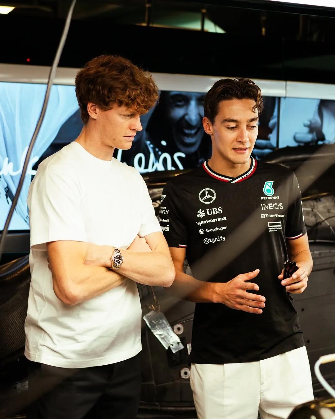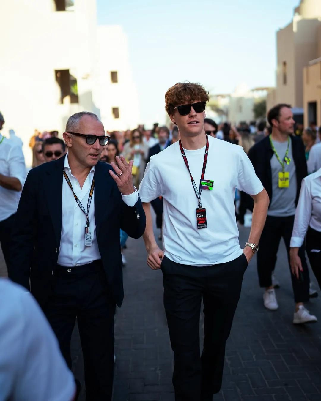 辛纳在阿布扎比观看F1比赛。网球明星和F1比赛很配[奸笑]