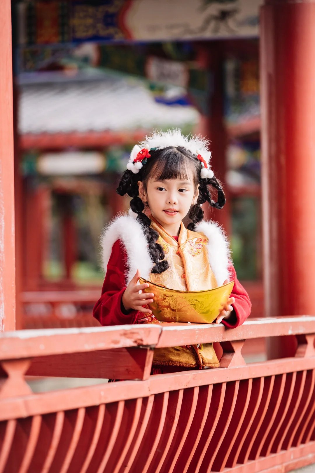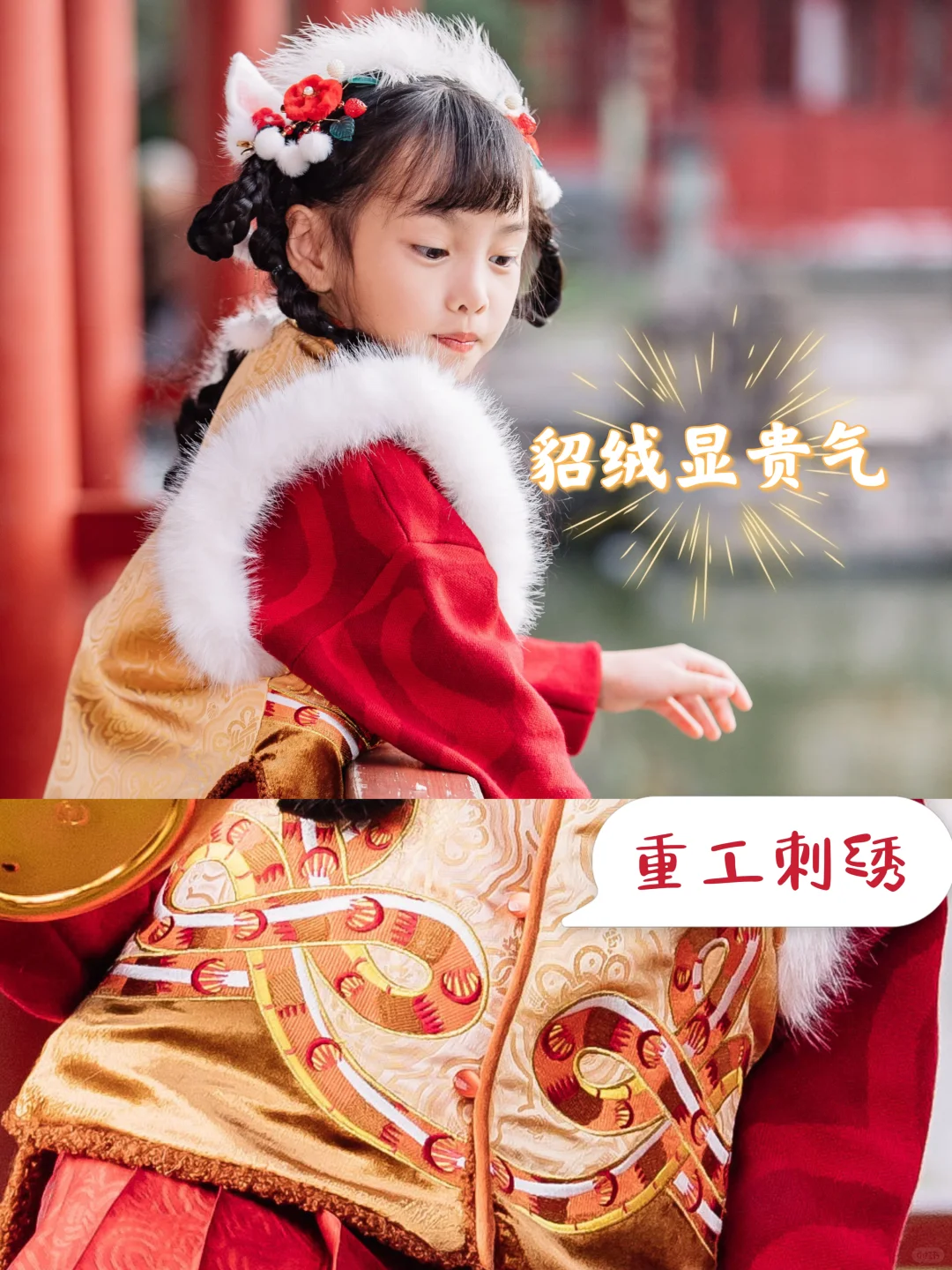 [烟花R][烟花R]给宝妹的外套选的是金色的年年如意马甲~超重工刺绣+仿貂绒超显贵气,摸到手上,是实打实的舒服,从360度看,这件金色马甲都在发光哎~不愧是“龙的传人”哈哈哈!