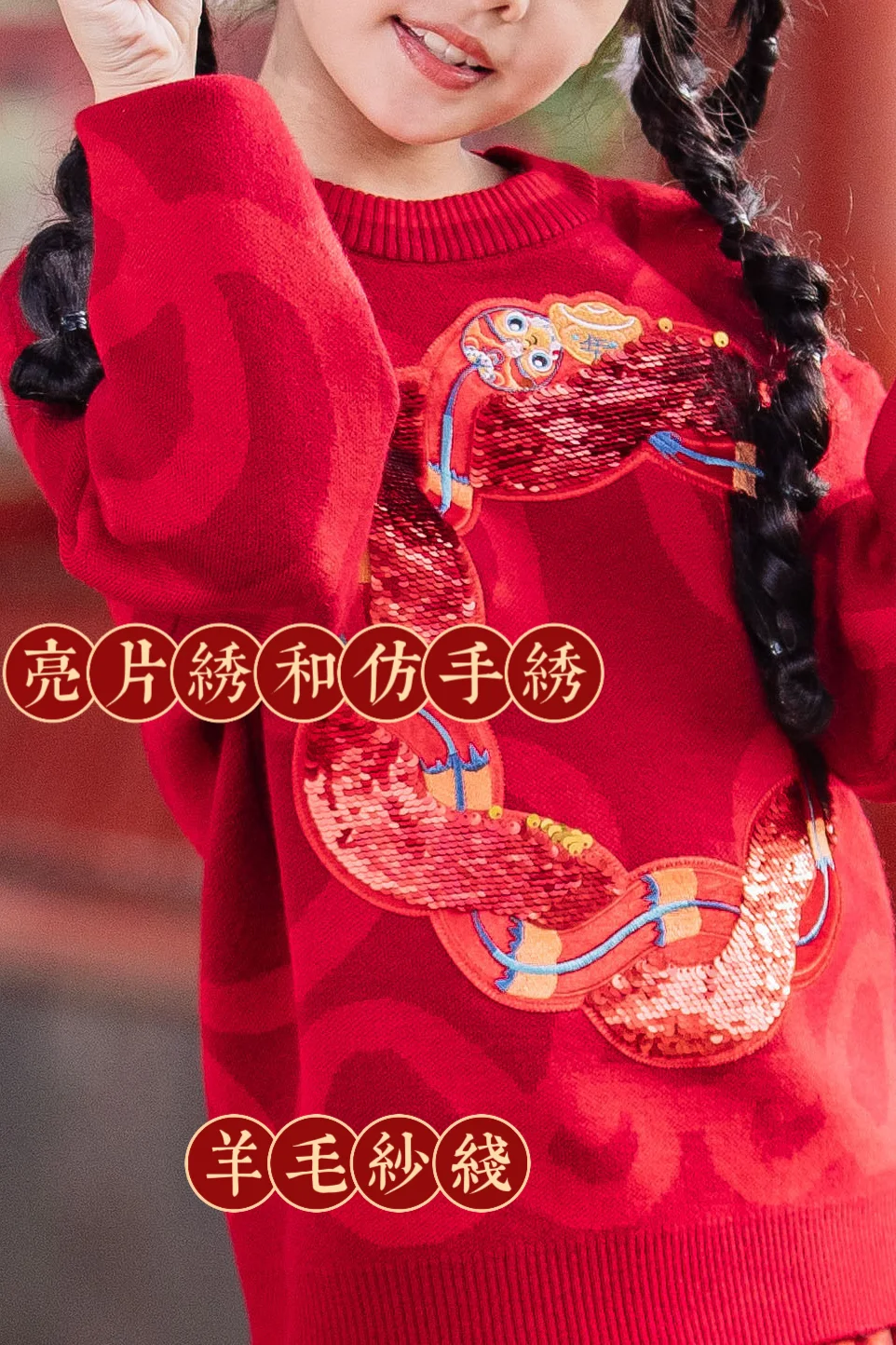 [福R][福R]内搭是蛇来运转毛衣~亮片绣的福蛇,寓意财源滚滚、福禄满满,值得一提的是,这件事斩获两大国际设计金奖的宝藏单品哦🥇,董璇、颖儿等明星妈咪也在穿的同款!!而且还有亲子装,妈咪和宝贝可以新年一起穿!超级讨喜呢!!