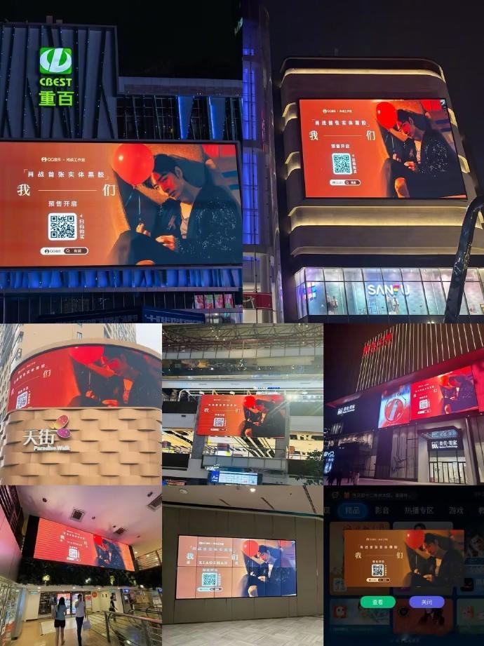 肖战首张实体黑胶应援 肖战我们实体专应援大屏 首张实体黑胶《我们》预售开启,应援大屏于国内外多城核心区域绚丽夺目。