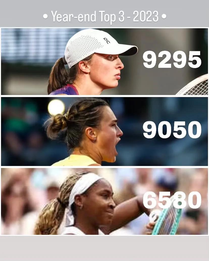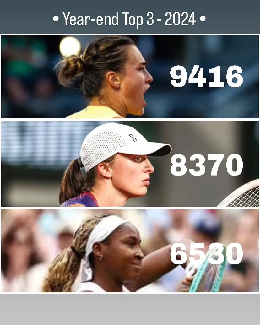 2024年收入最高的网球女运动员。高芙排第一。她的收入能超过斯瓦泰克,除了整年成