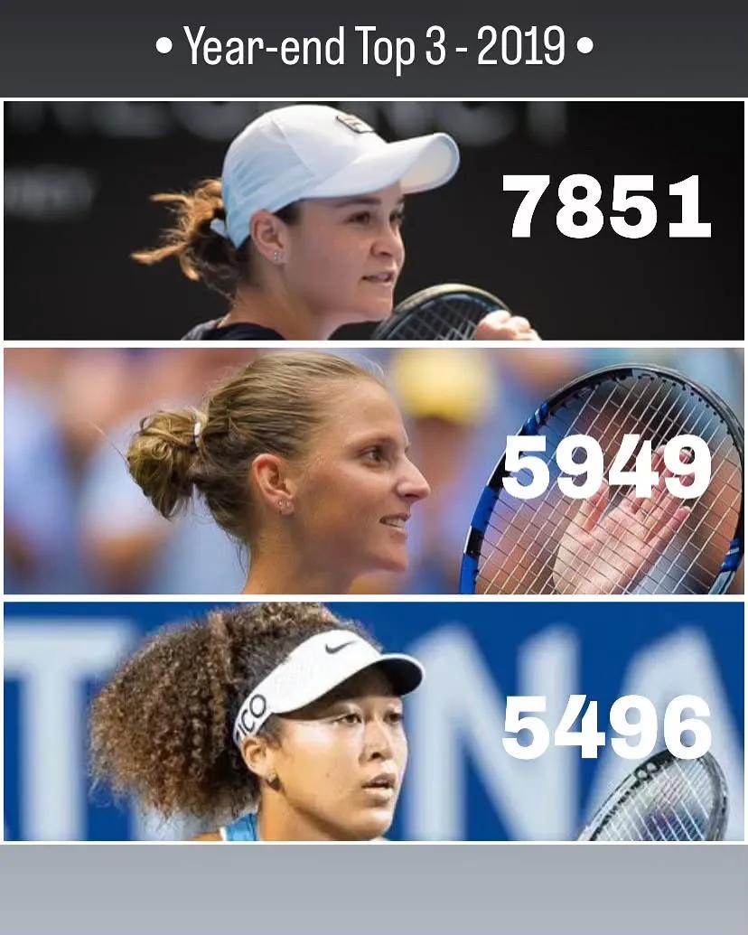 WTA过去10年的世界前三。曾经熟悉的球员渐渐被新人代替,2-4年换新颜。